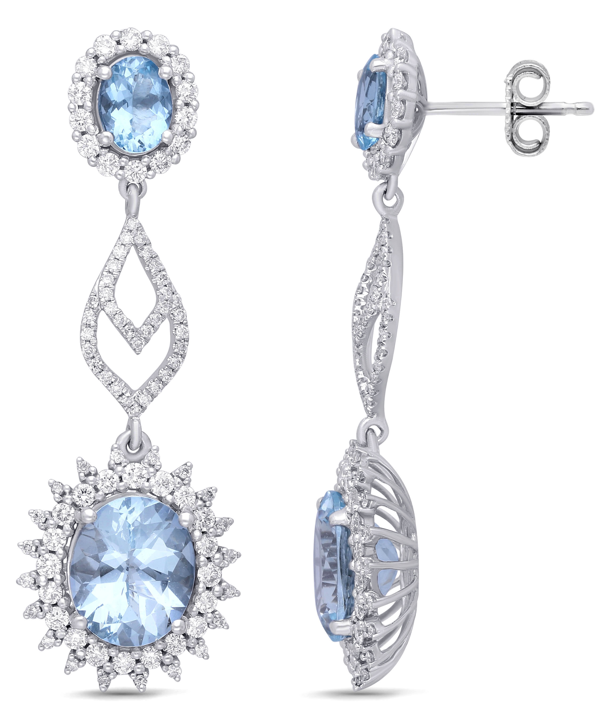 14K WHITE GOLD AQUA MARINE & WHITE DIAMO