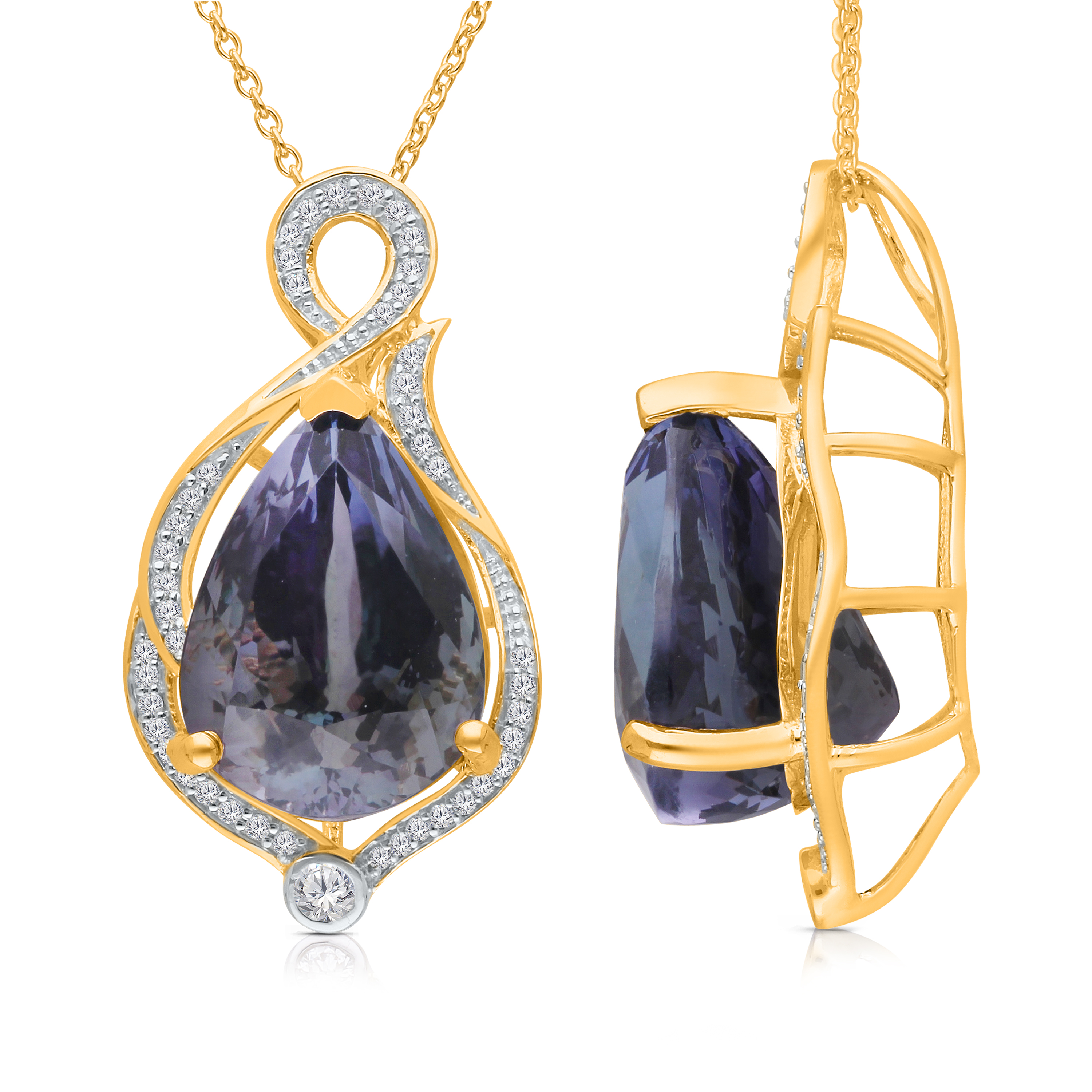 14K YELLOW GOLD &NON HEAT TANZANITE WITH WHITE DIAMOND FASHION PENDANT