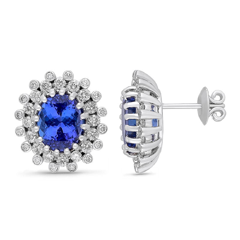 14K WHITE GOLD SI TANZANITE DIAMOND FASHION EARRING