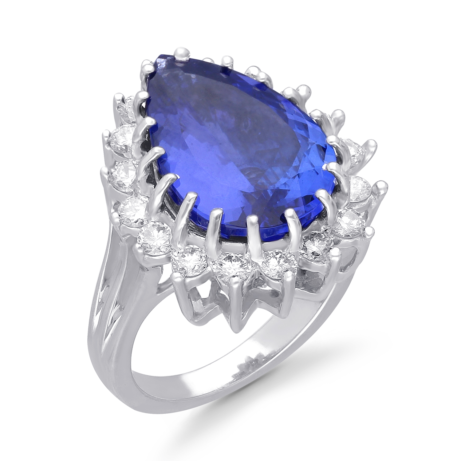 14K TANZANITE PEAR WITH WHITE ROUND RING