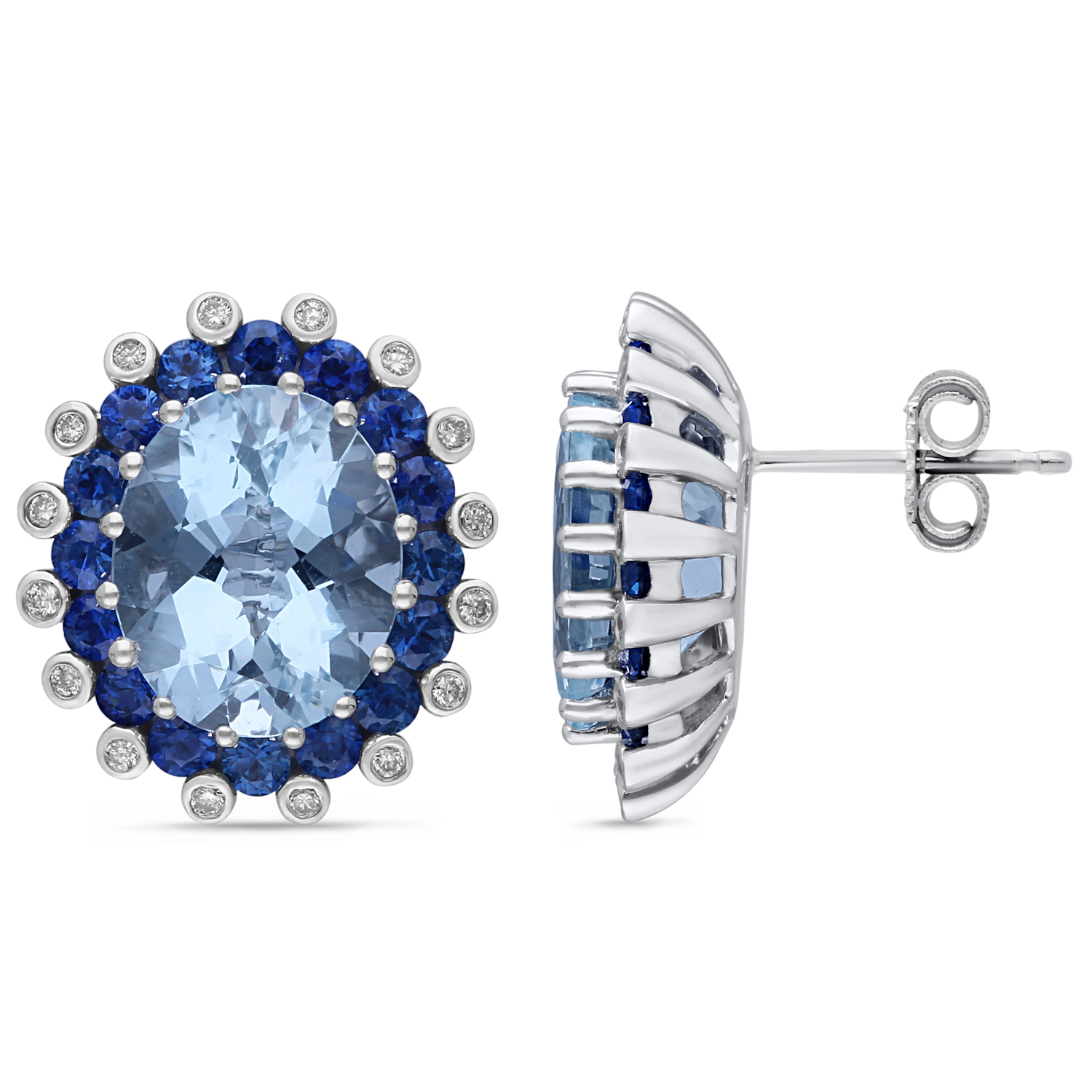 14K WHITE GOLD AQUA MARINE &SAPPHIRE WITH WHITE DIAMOND FASHION EARRING