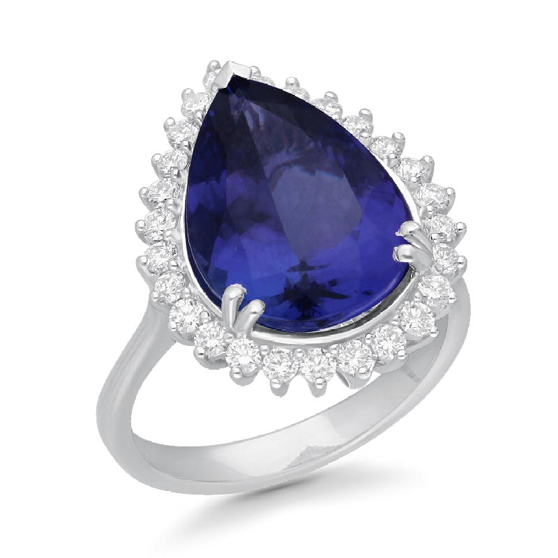 14K WHITE GOLD TANZANITE & WHITE DIAMOND