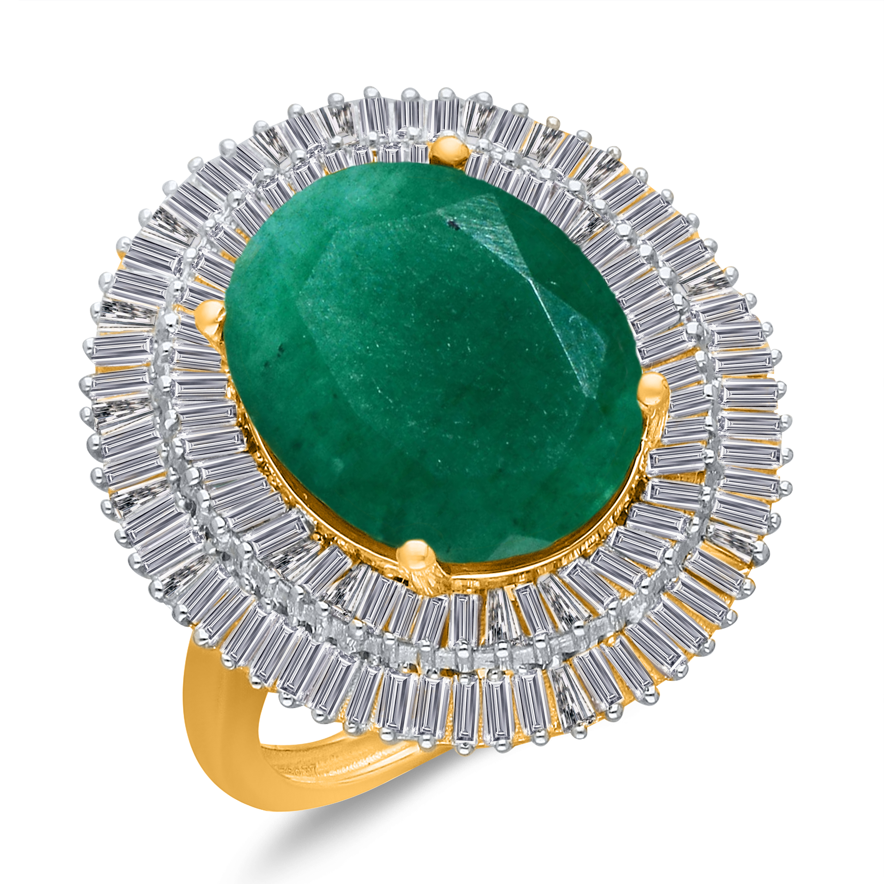 14K YELLOW GOLD ZAMBIAN EMERALD & WHITE