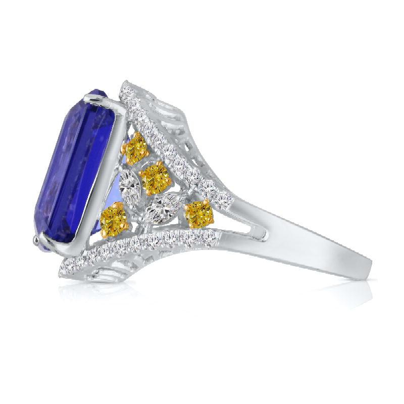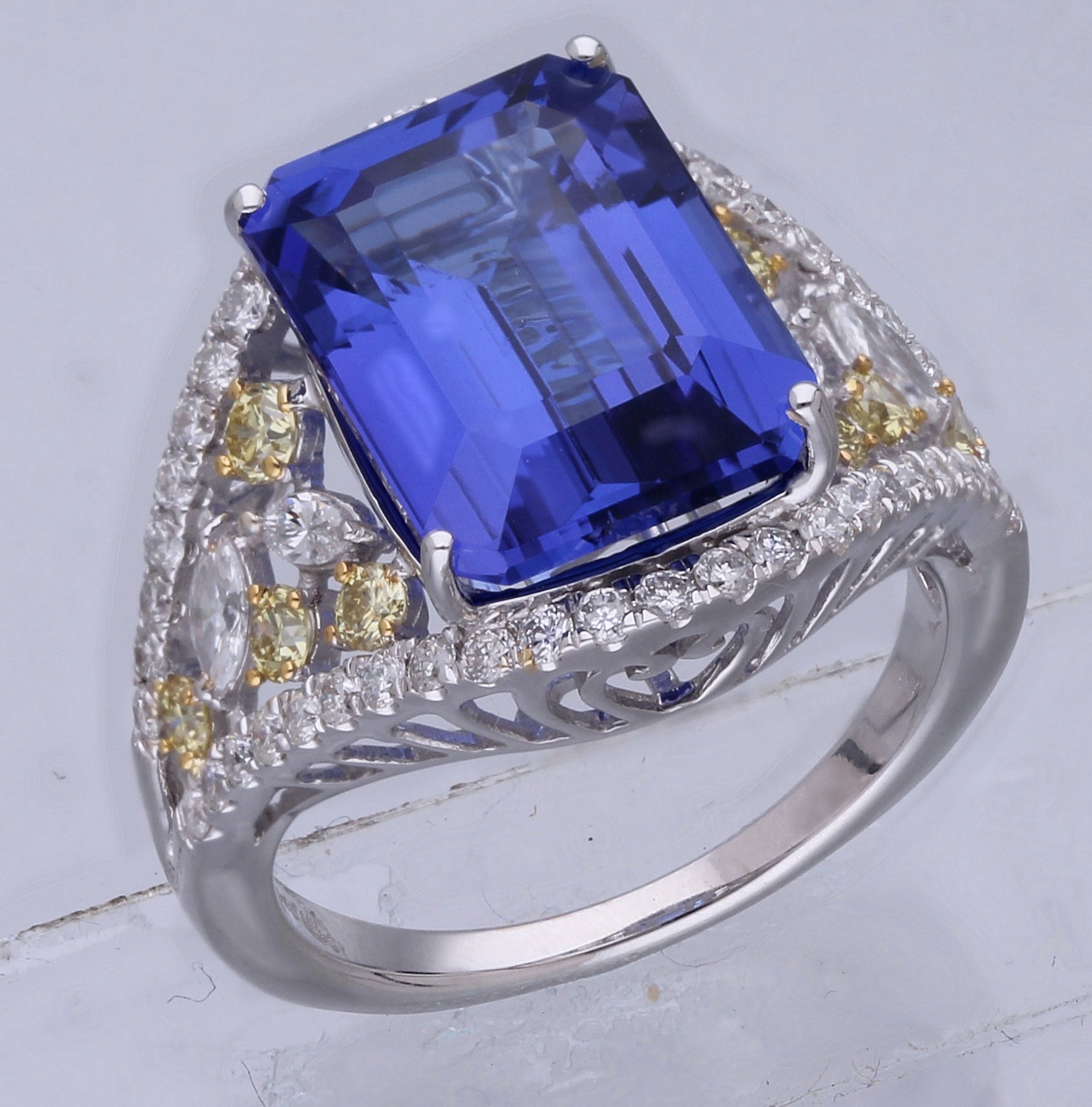 14K WHITE GOLD TANZANITE & WHITE DIAMOND