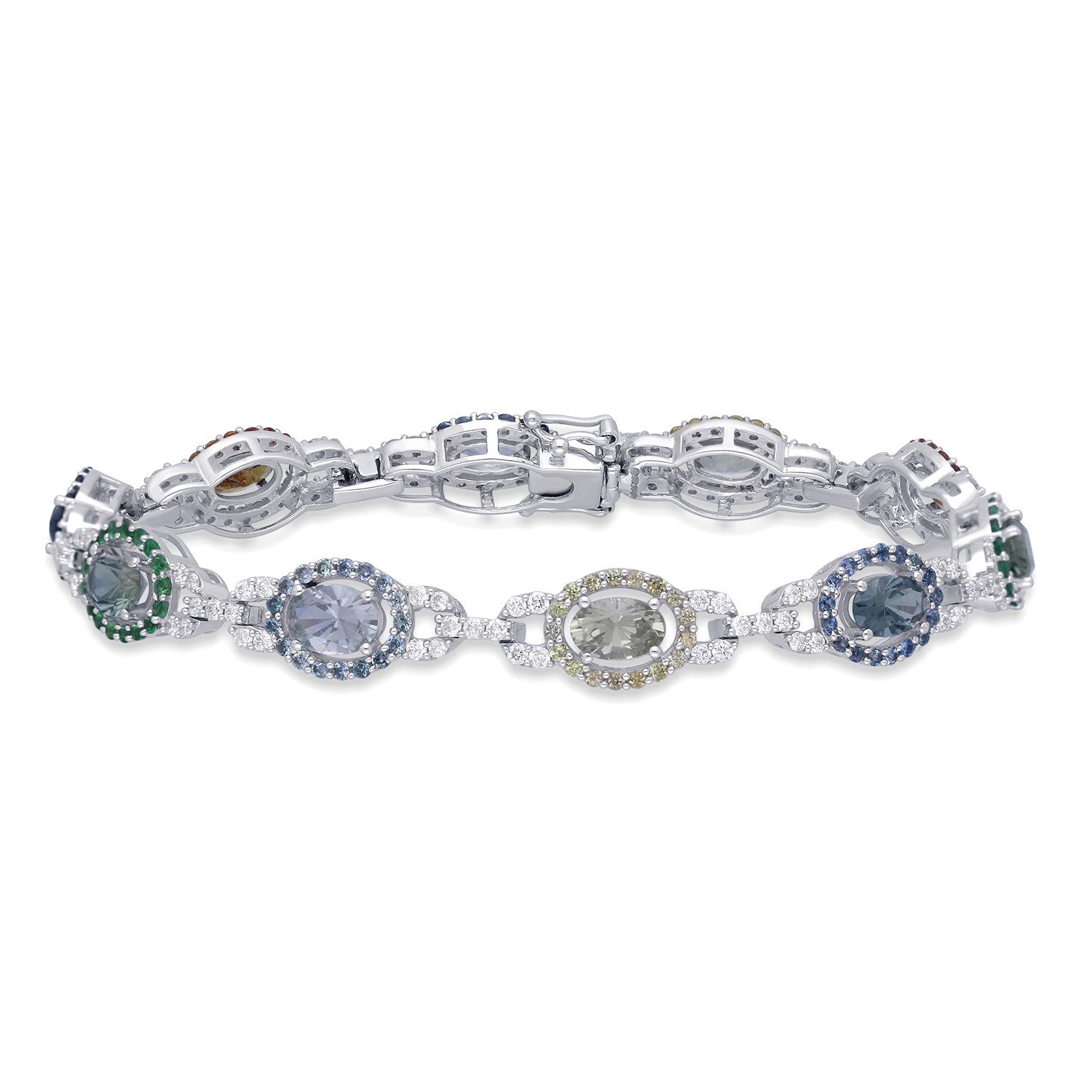 14K WHITE GOLD MULTI COLOR SAPPHIRE BRE