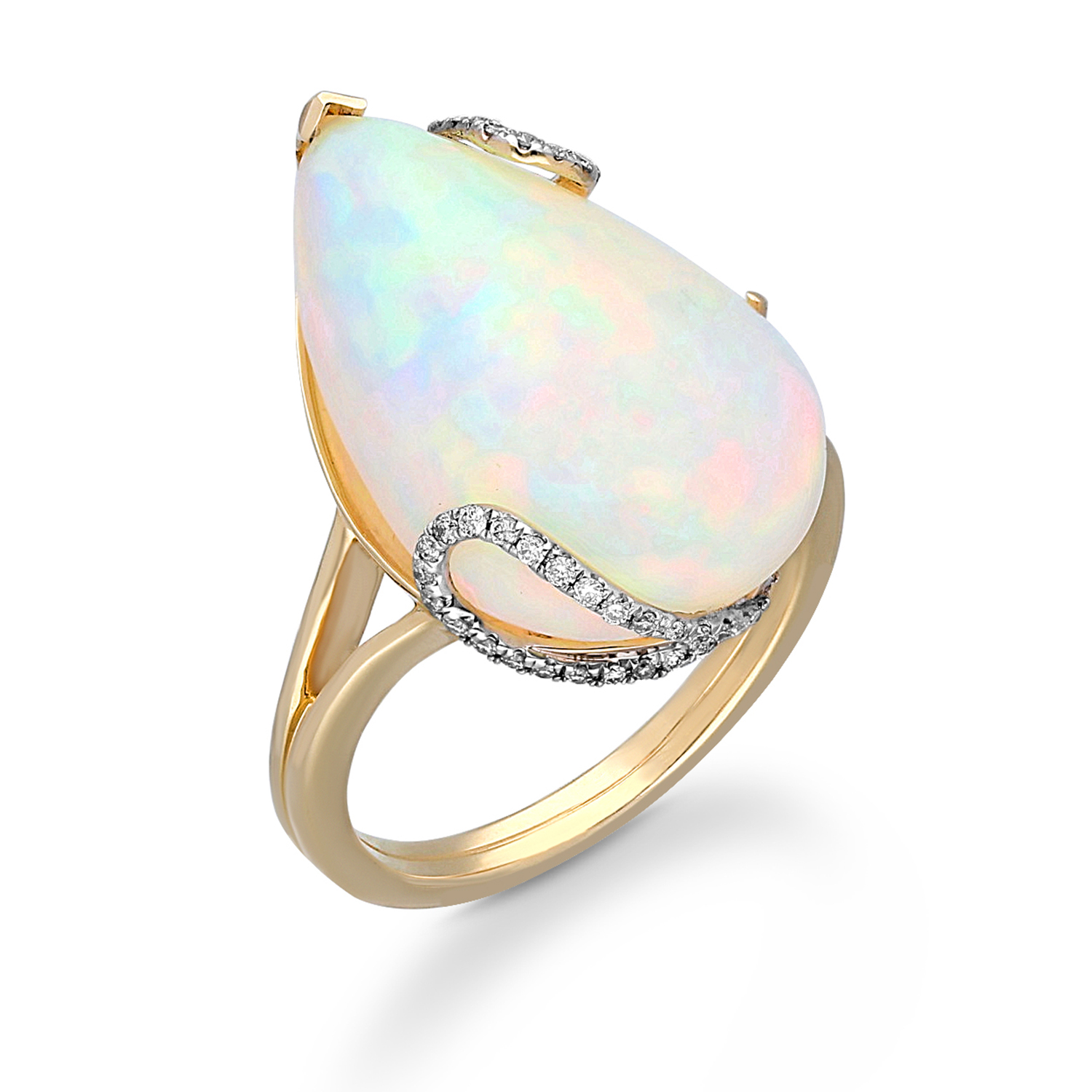 14K YELLOW GOLD WITH OPAL & DIAMOND RING