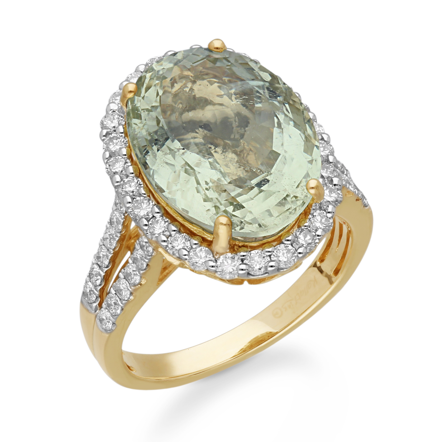14K YELLOW GOLD GREEN AQUA MARINE DIAMON