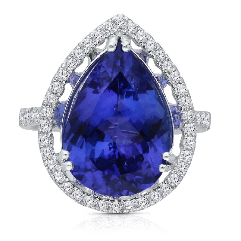 14K WHITE GOLD TANZANITE & WHITE DIAMOND