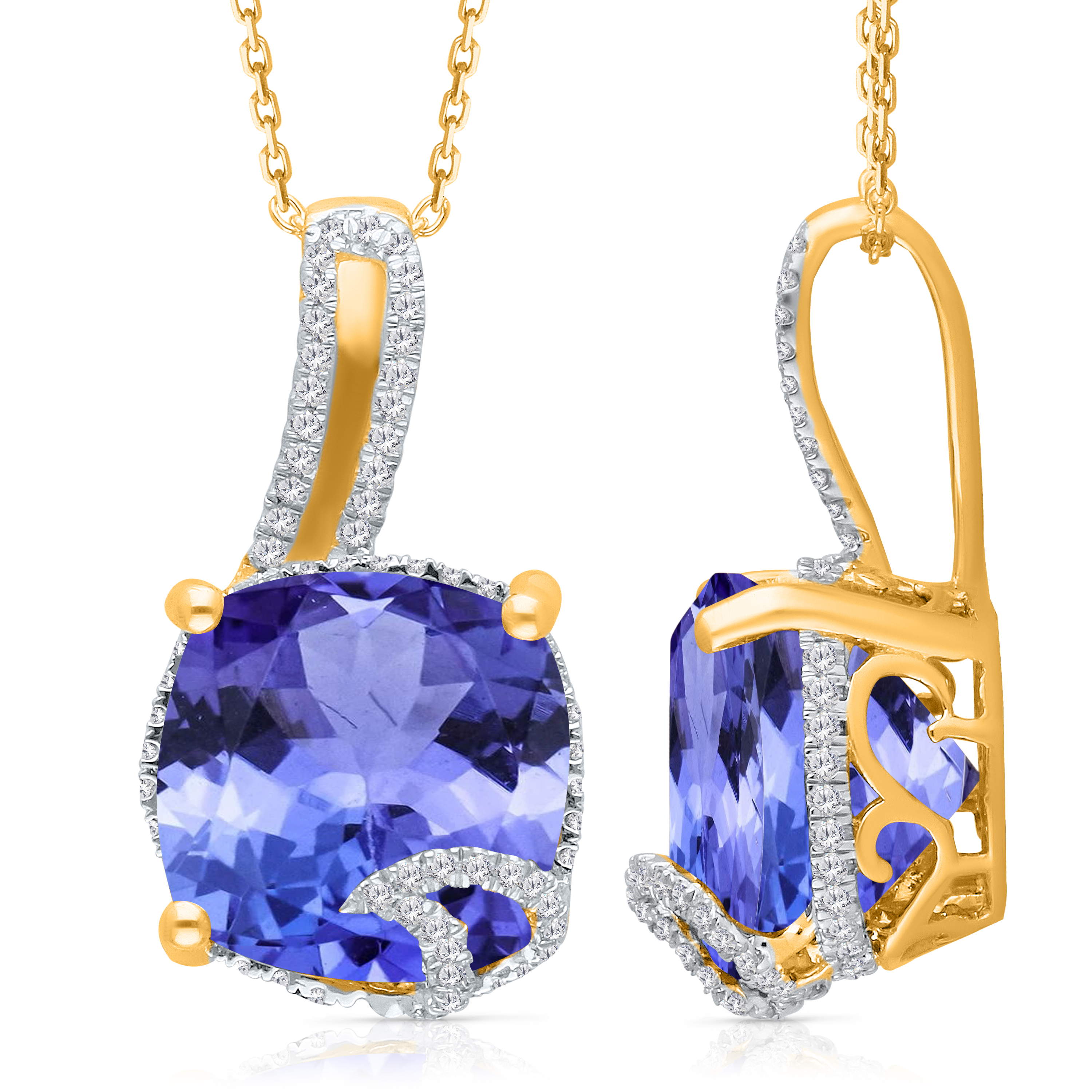 14K YELLOW GOLD TANZANITE & WHITE DIAMOND FASHION PENDANT