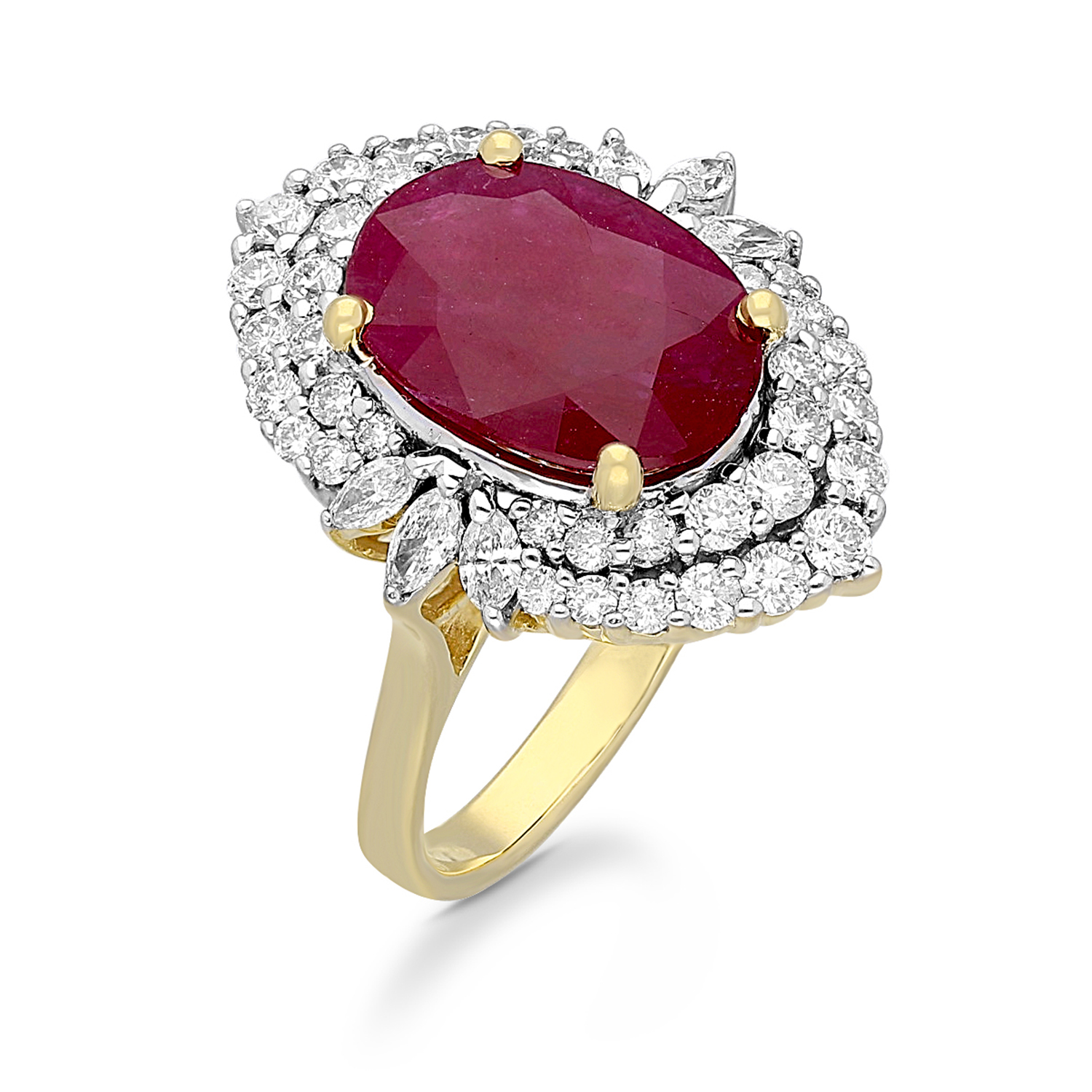 14K YELOW GOLD NATURAL RUBY & DIA RING