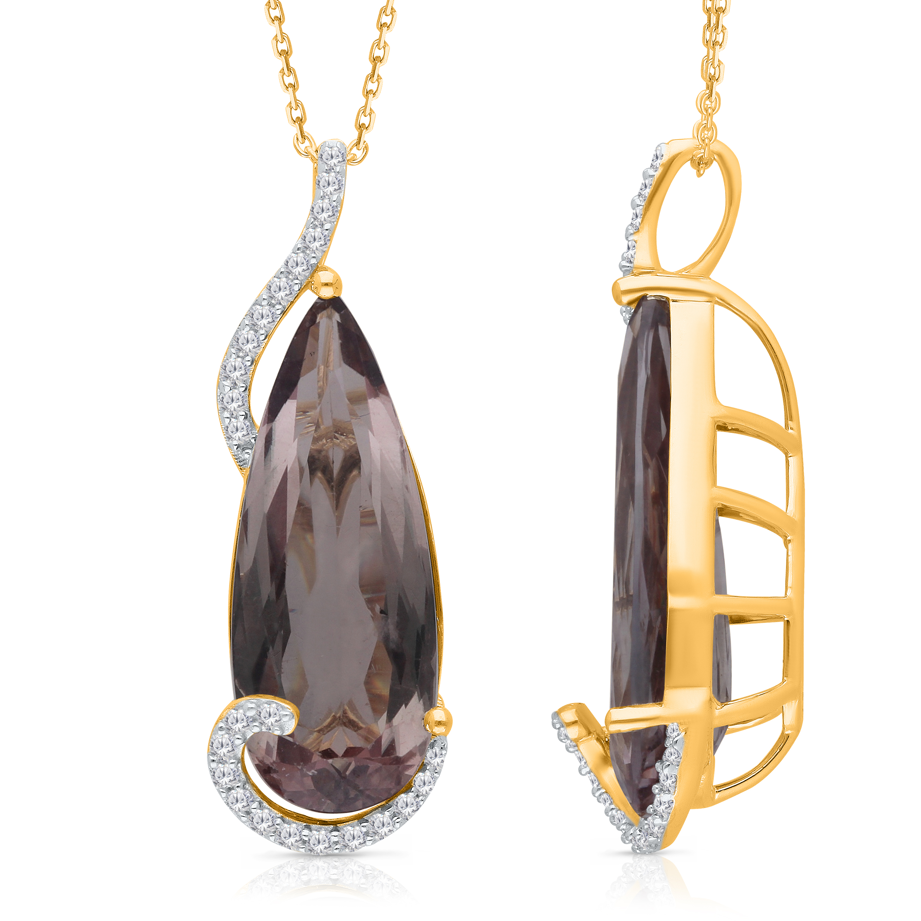 14 K YELLOW GOLD CSARITE WITH WHITE DIAMOND FASHION PENDANT