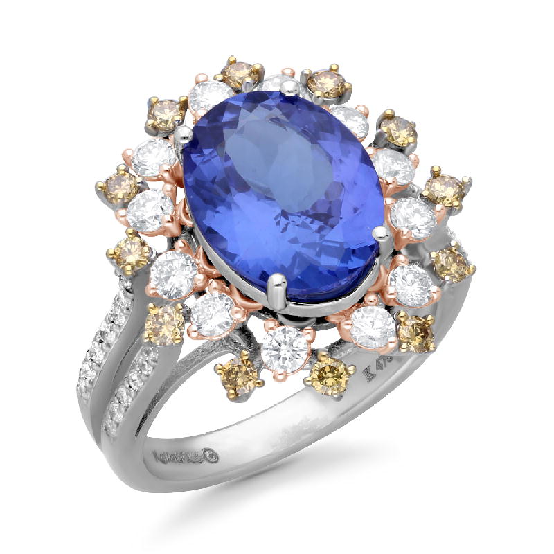 14K ROSE & WHITE GOLD TANZANITE & YELLOW