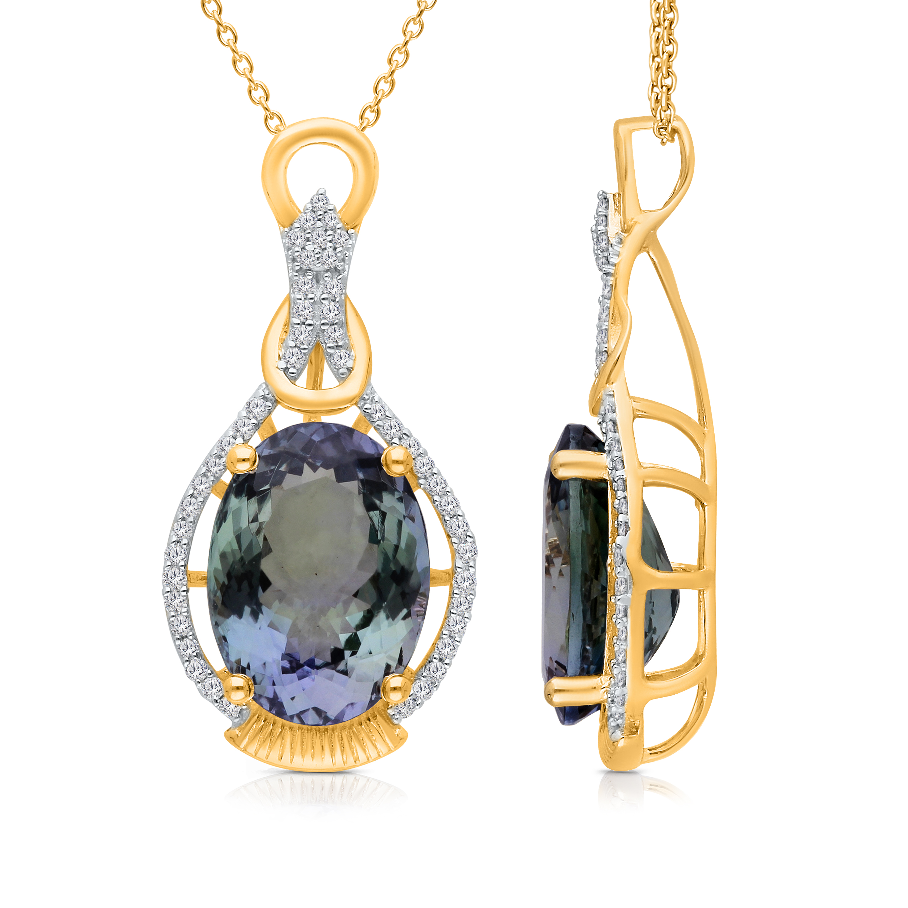 14K YELLOW GOLD &NON HEAT TANZANITE WITH WHITE DIAMOND FASHION PENDANT