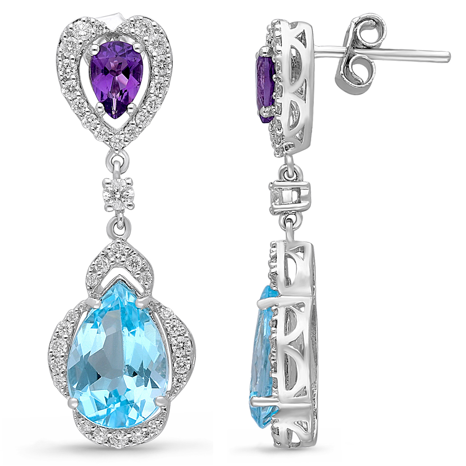14K WHITE GOLD AMETHIES & BLUE TOPAZ DIA