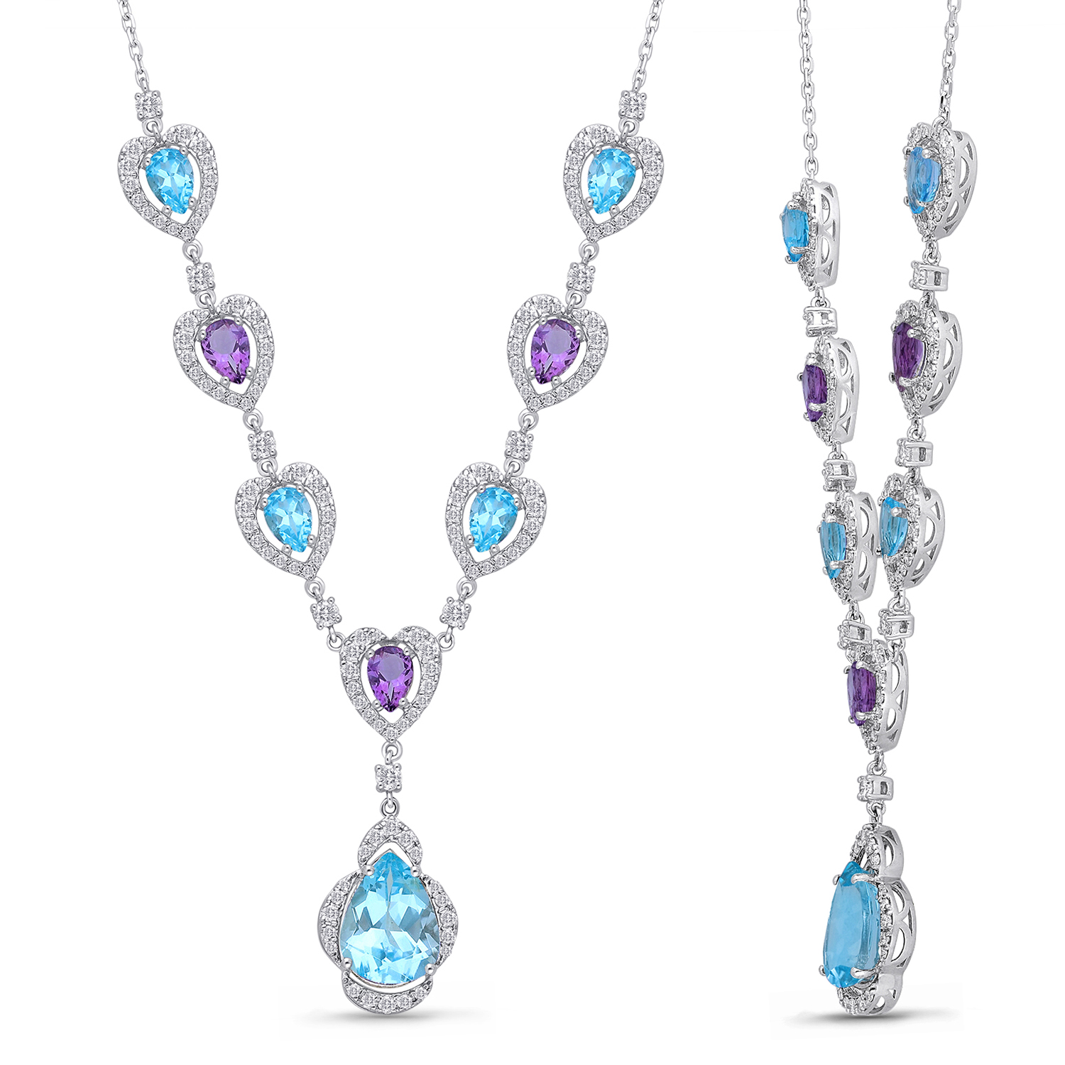 14K WHITE GOLD AMETHIES & BLUE TOPAZ DIA