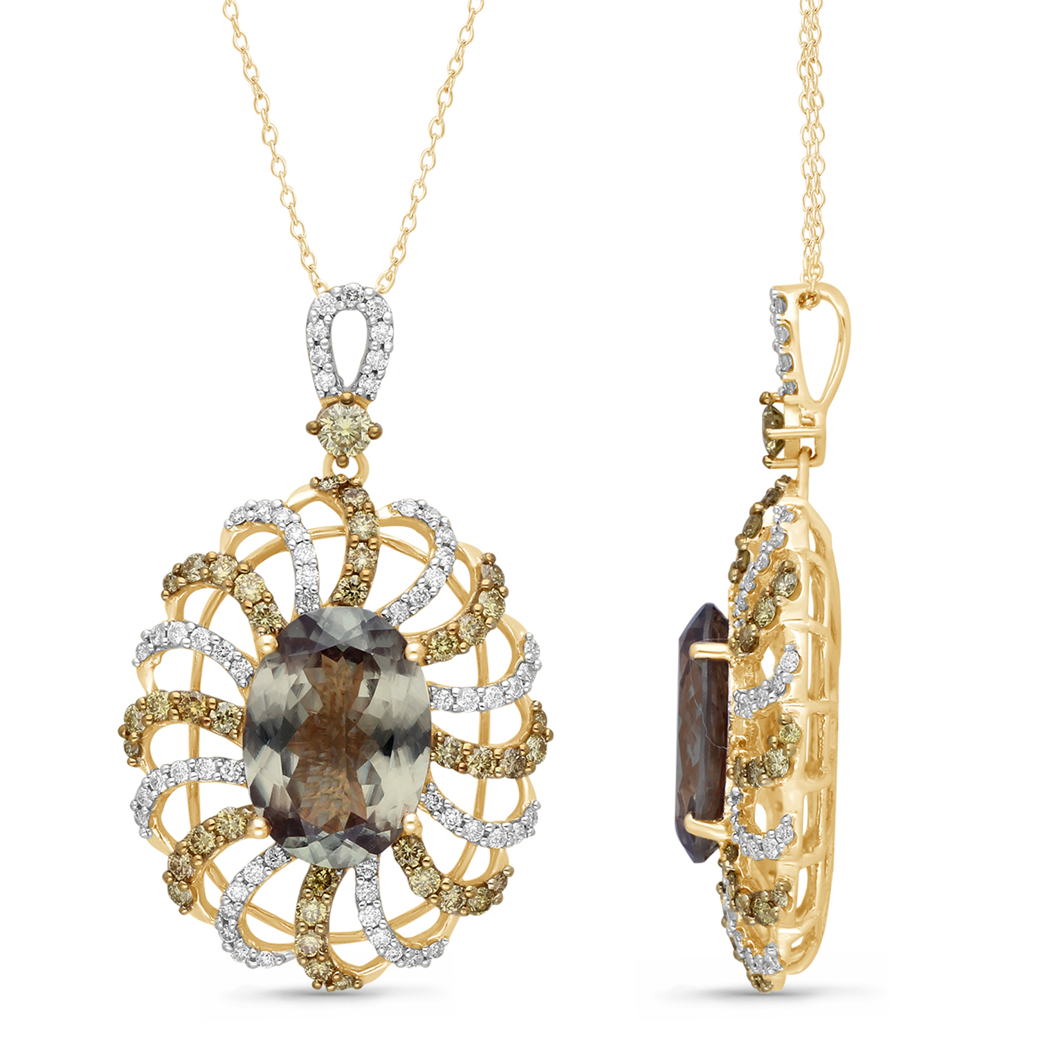 14K YELLOW GOLD CSARITE & YELLOW FANCY WITH WHITE DIAMOND PENDANT