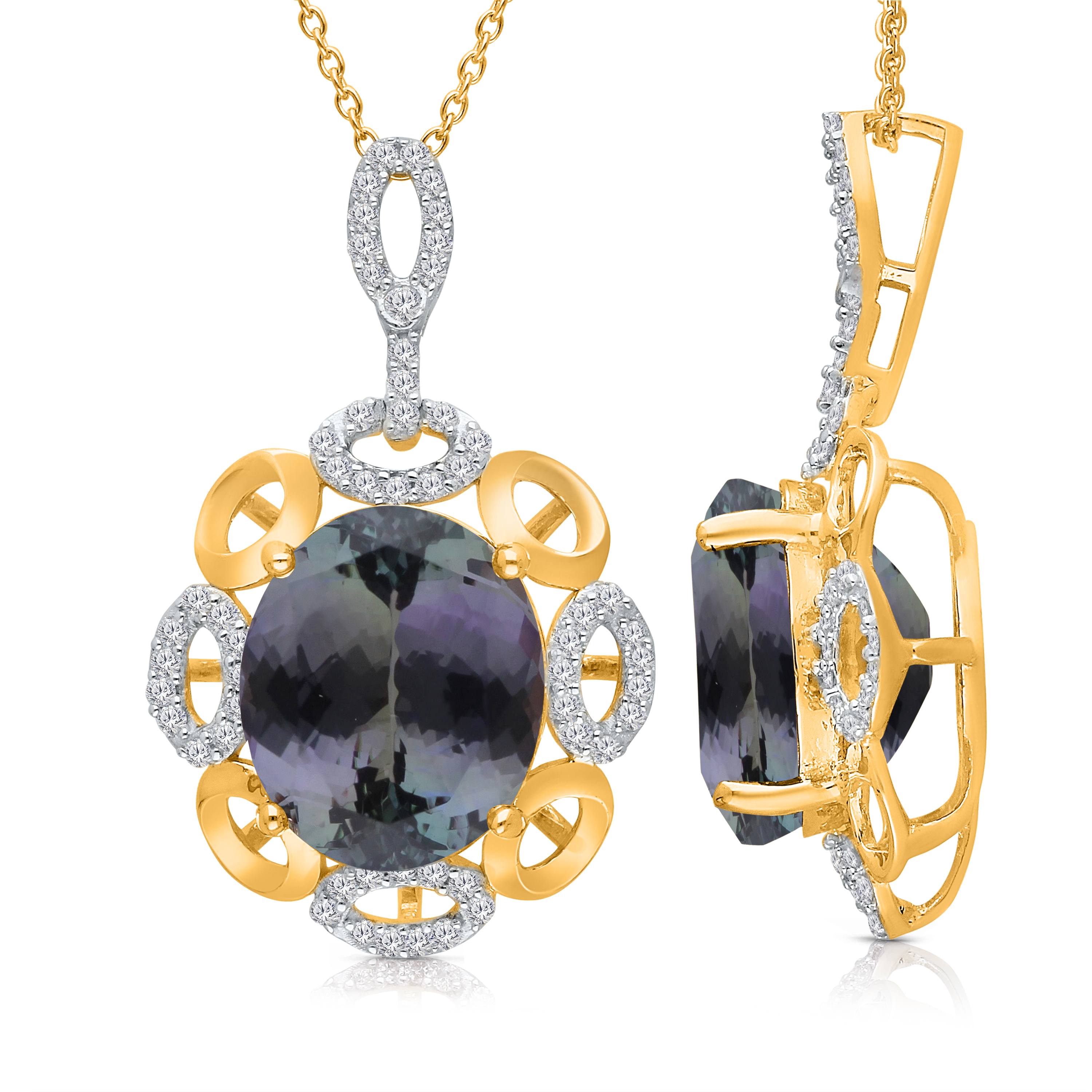 14K YELLOW GOLD NON HEAT TANZANITE & WHITE DIAMOND FASHION PENDANT