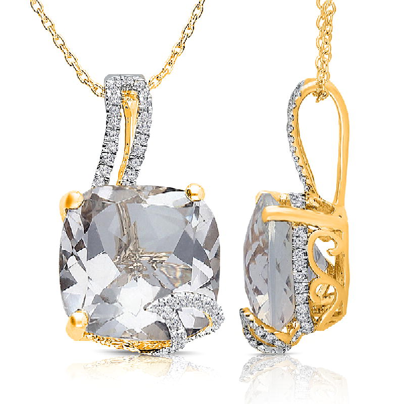14K YELLOW GOLD EMERALD WITH WHITE DIAMOND FASHION PENDANT