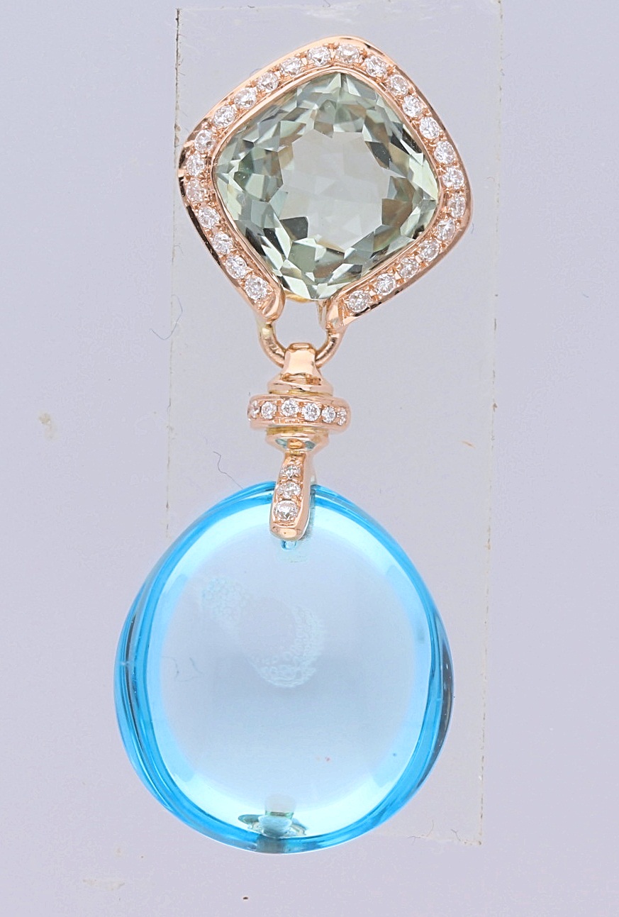 14K ROSE GOLD BLUE TOPAZ & GREEN AMETHIE