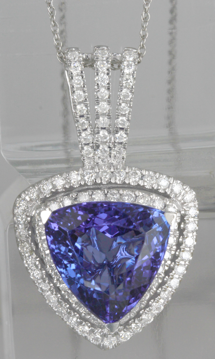WHITE GOLD TRILLION TANZANITE DIA PENDAN