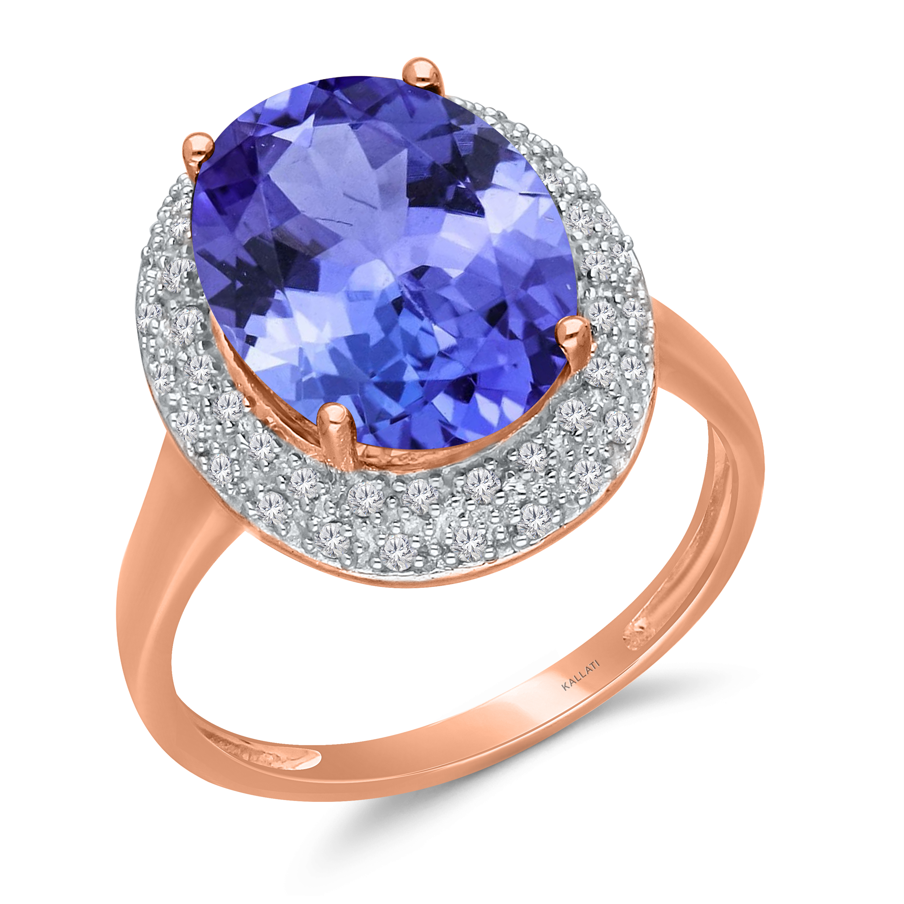 14K ROSE GOLD TANZANITE & WHITE DIAMOND FASHION RING
