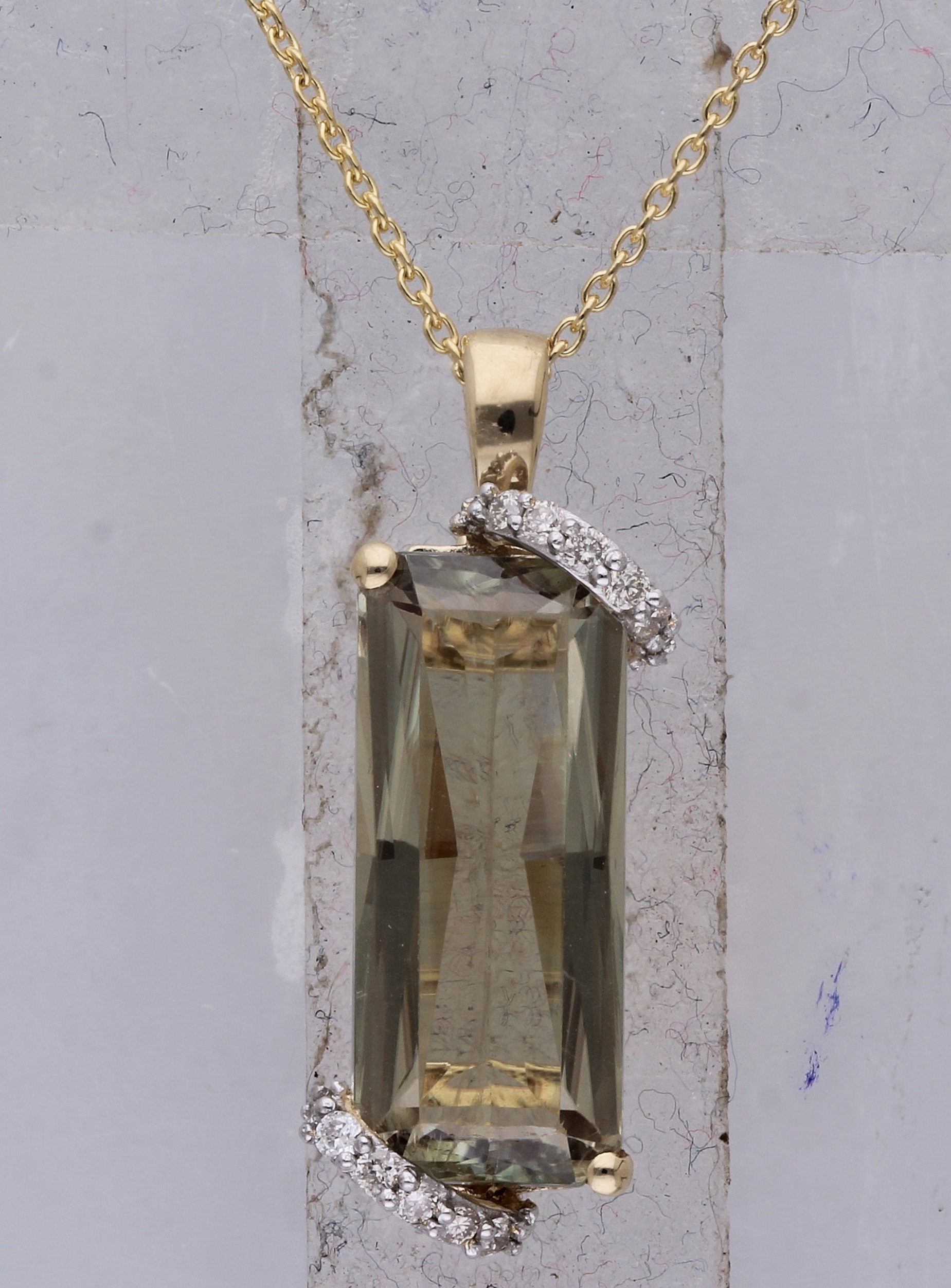 14K YELLOW GOLD CSARITE WITH WHITE DIAMOND FASHION PENDANT