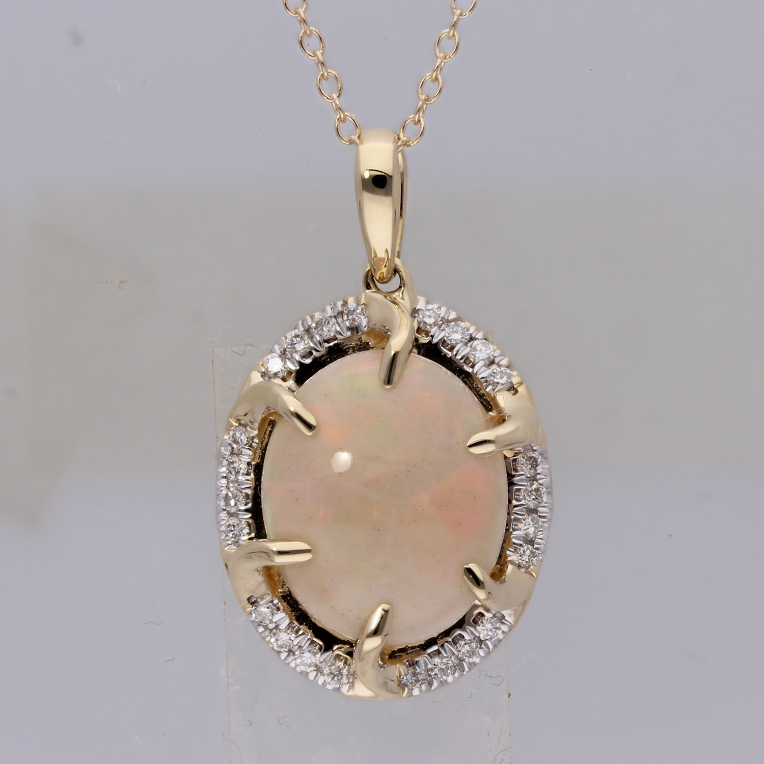 14K YELLOW GOLD OPAL STONE DIAMOND FASHION PENDANT