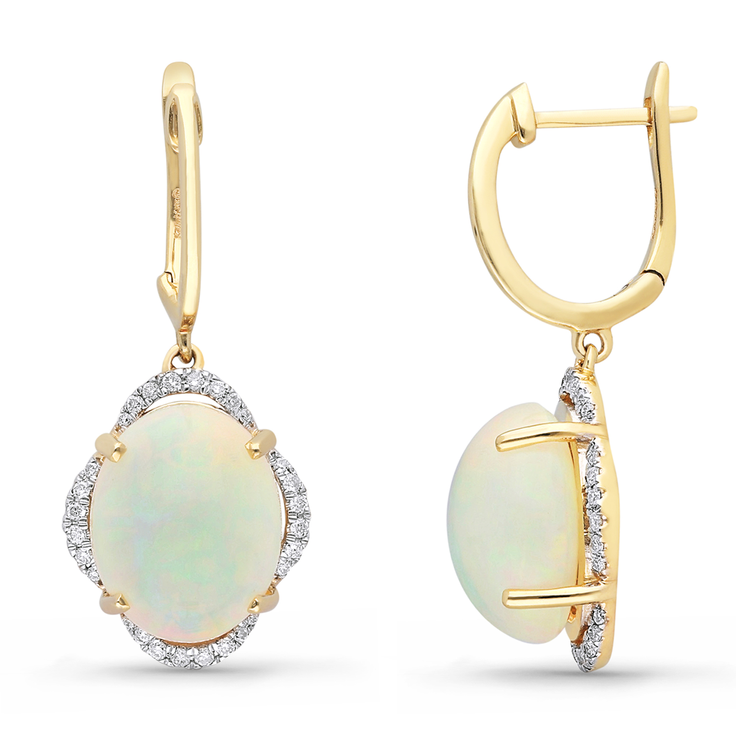 14K YELLOW GOLD OPAL & DIAMOND EARRING