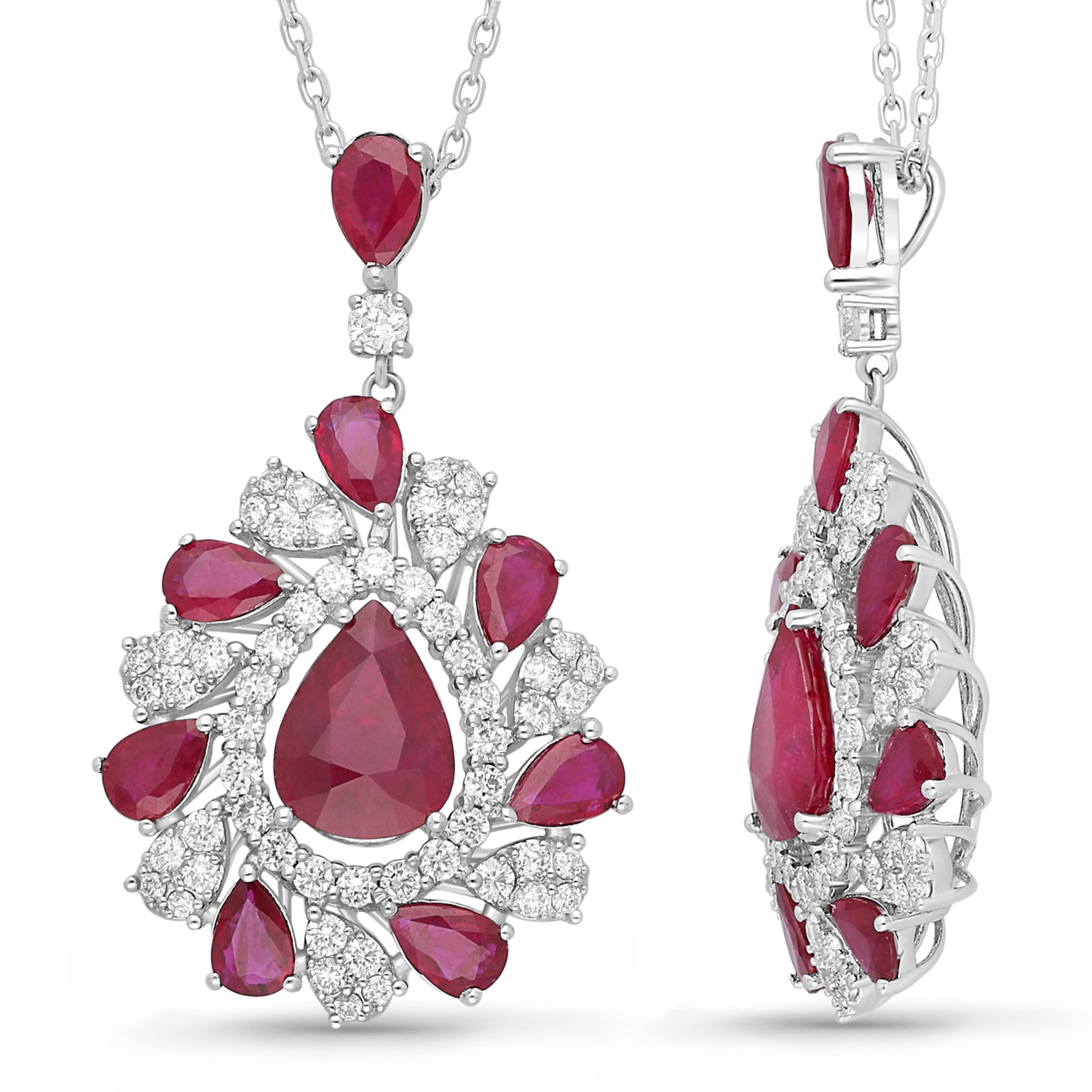 14K WHITE GOLD RUBY & WHITE DIA RIN