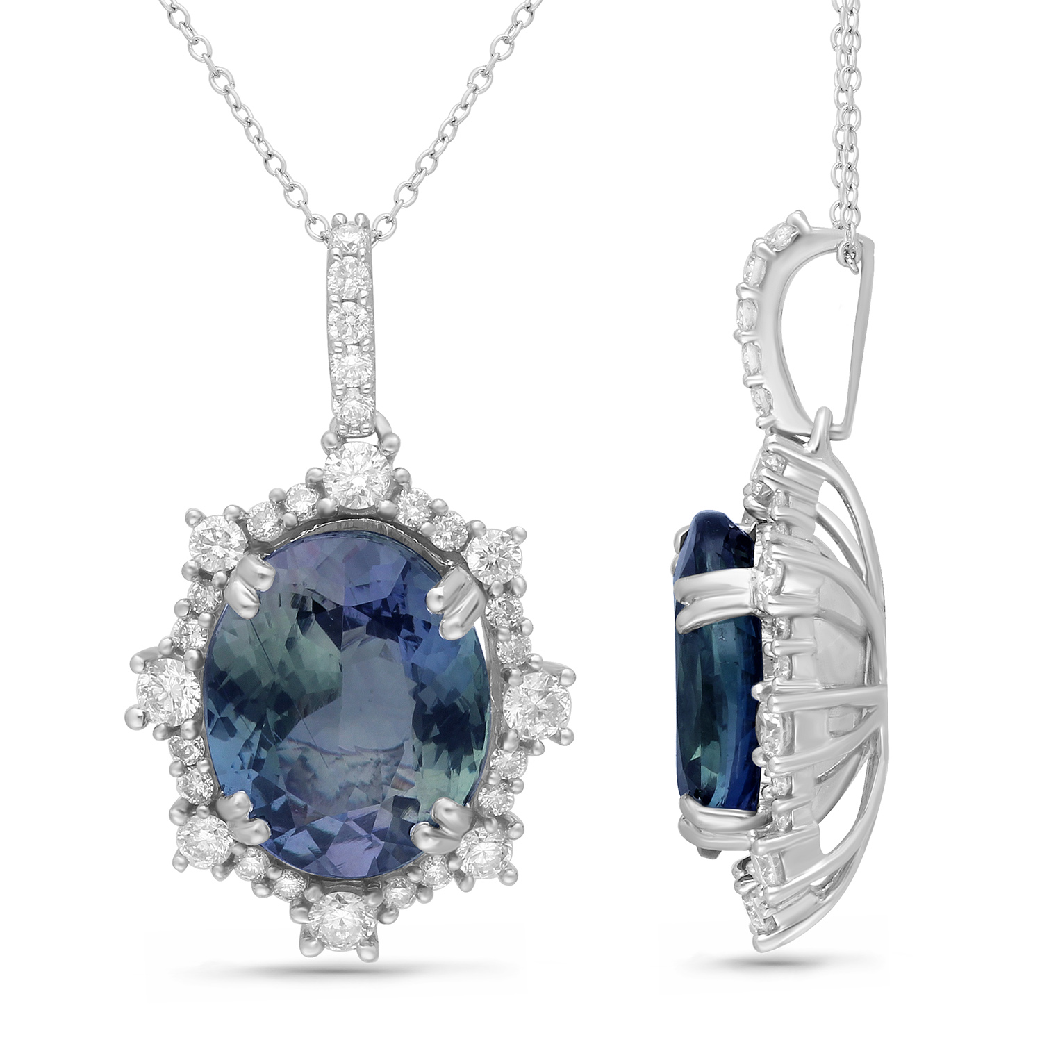 14K WHITE GOLD NON HEAT TANZANITE & WHIT