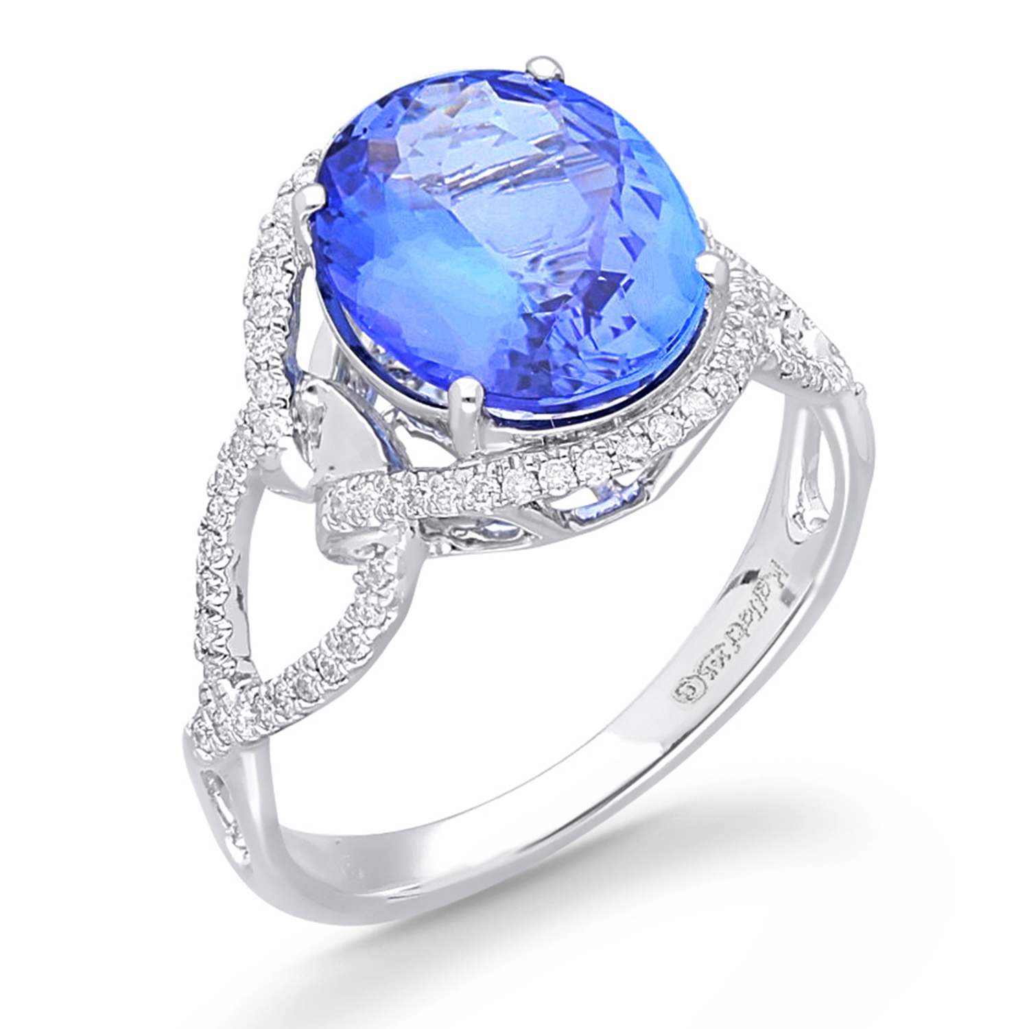 14K OVAL TANZANITE STONE WITH DIAM RING