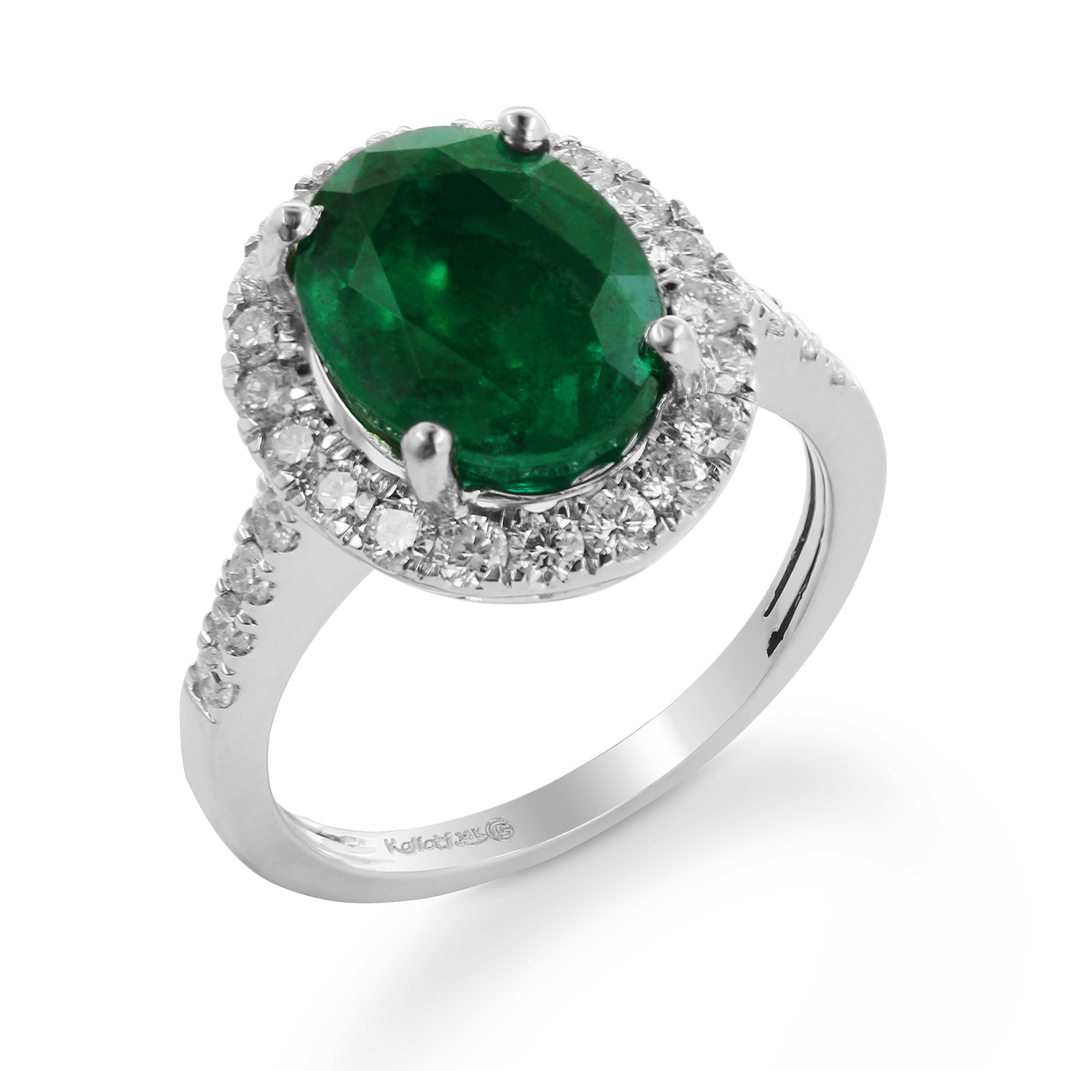 14K WHITE GOLD EMERALD WHITE DIA RING
