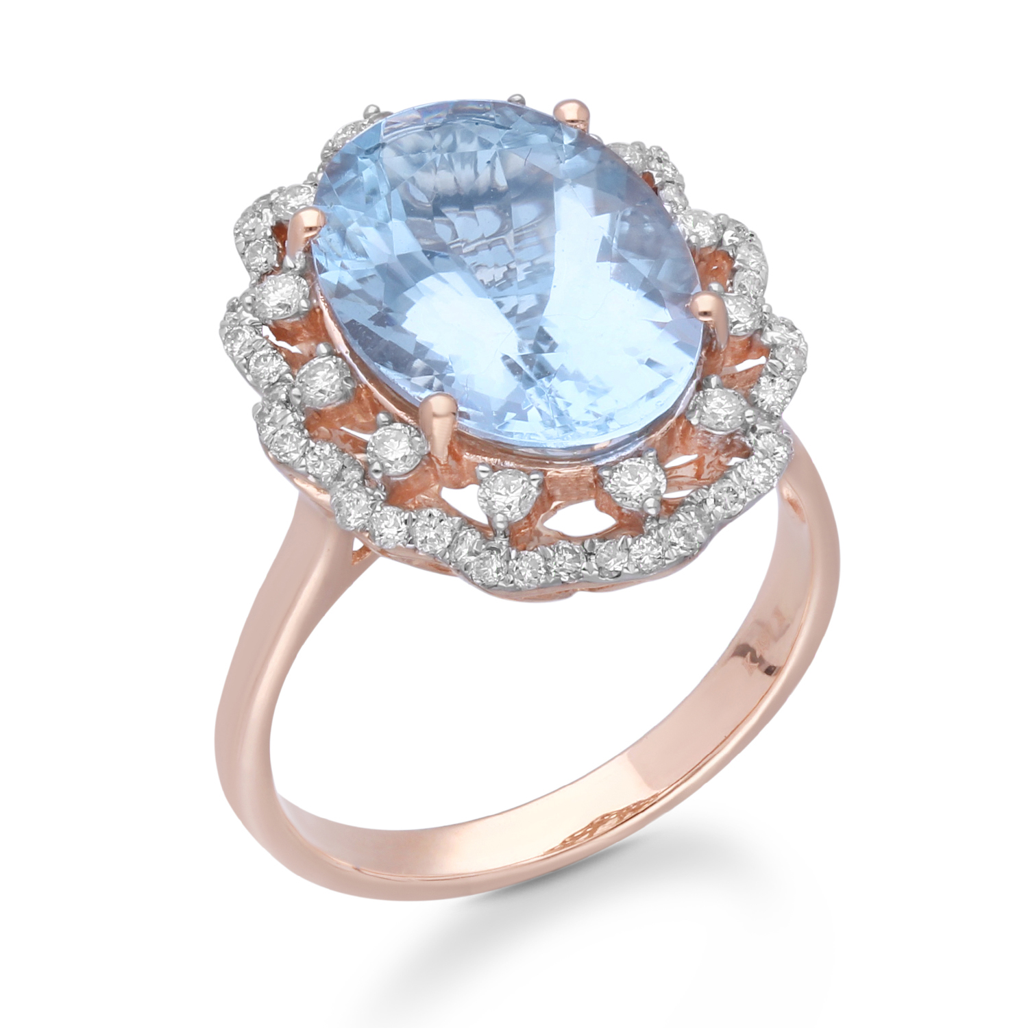14K ROSE GOLD WHITE DIAMOND & AQUA MARIN