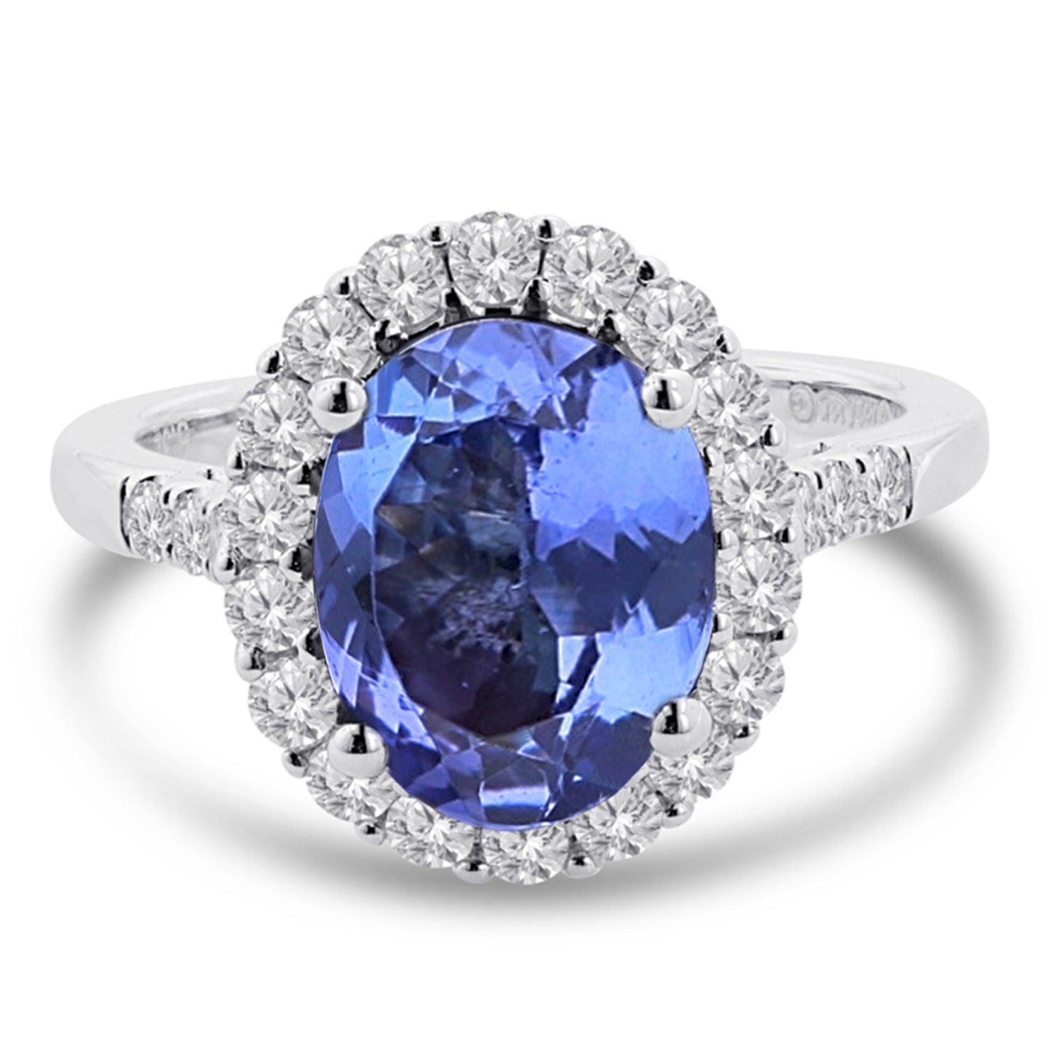 14K WHITE GOLD OVAL TANZANITE DIAMOND RI