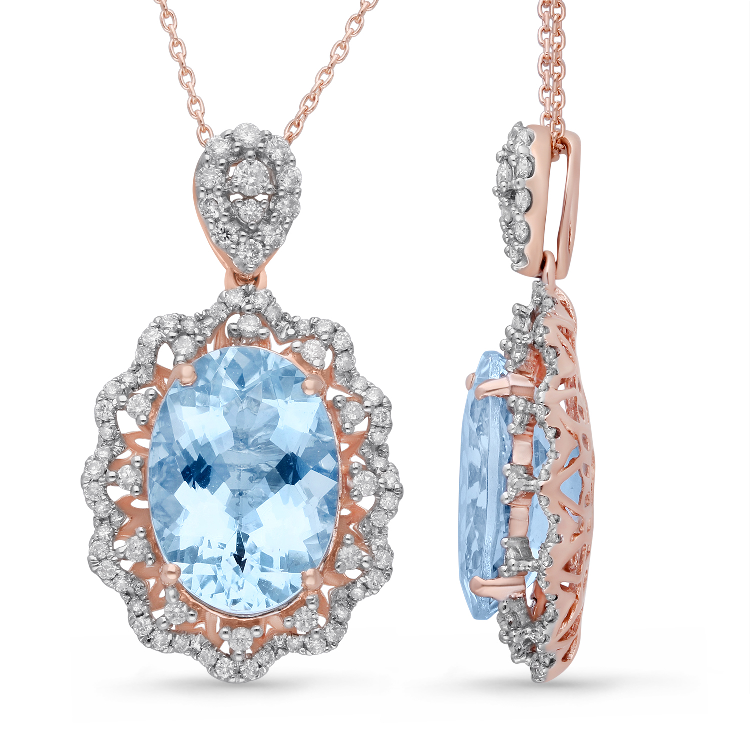 14K ROSE GOLD AQUAMARINE & SAPPHIRE DIA