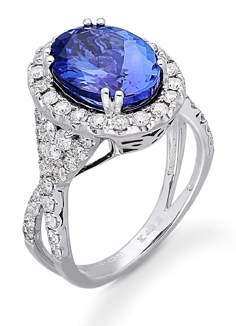 14K WHITE GOLD OVAL TANZANITE DIAMOND FA