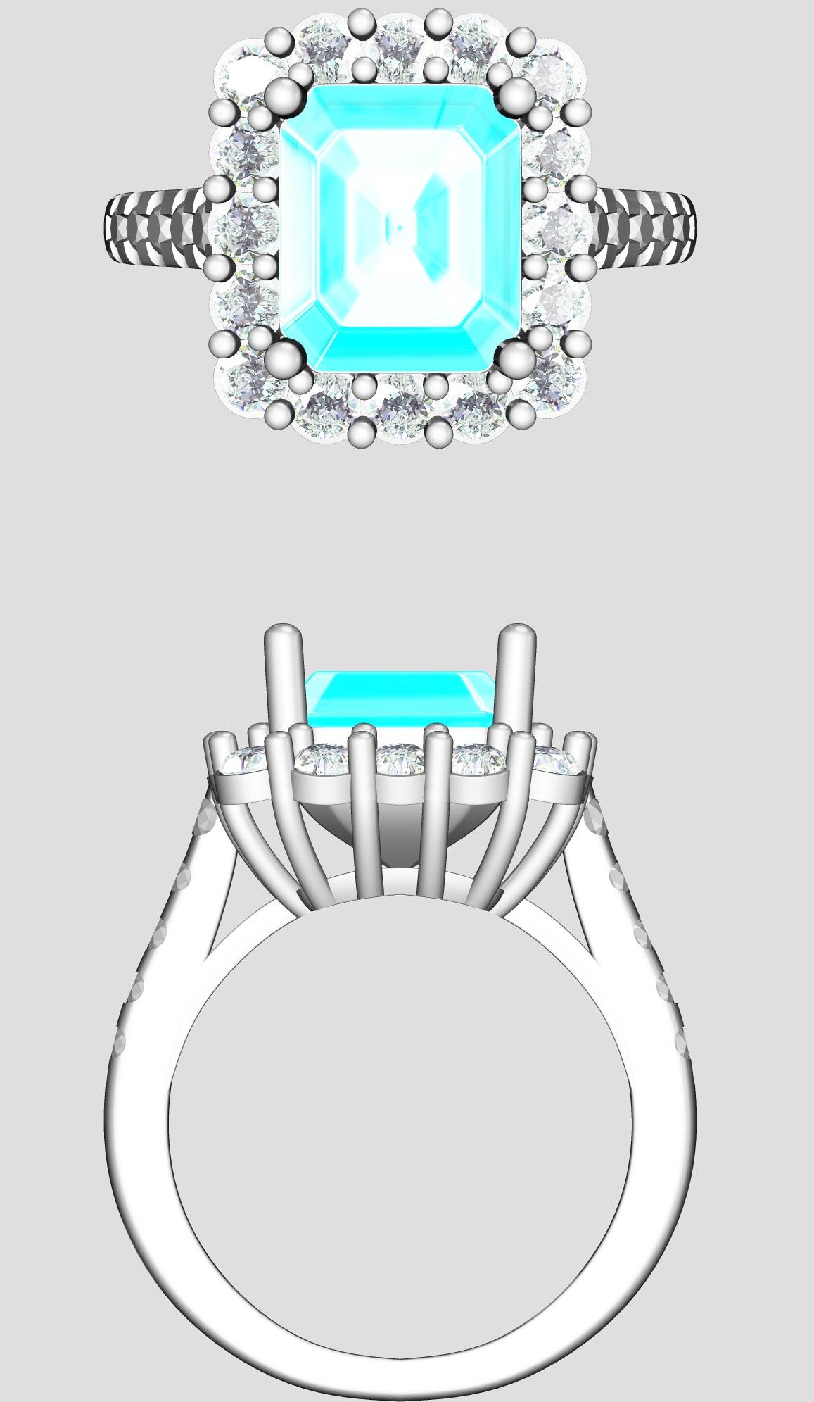 14K WHITE GOLD SI EMERALD DIAMOND FASHIO