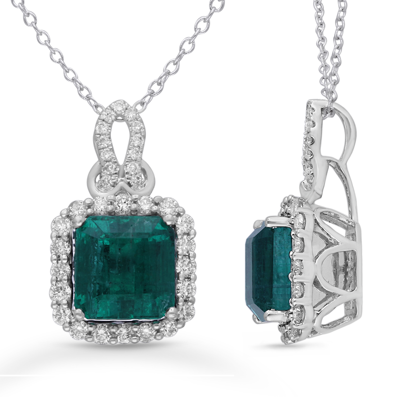 14K WHITE GOLD ZAMBIAN EMERALD & WHITE