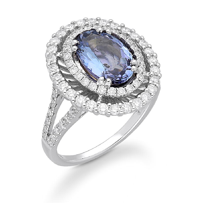 14K WHITE GOLD TANZANITE & WHITE DIAMOND