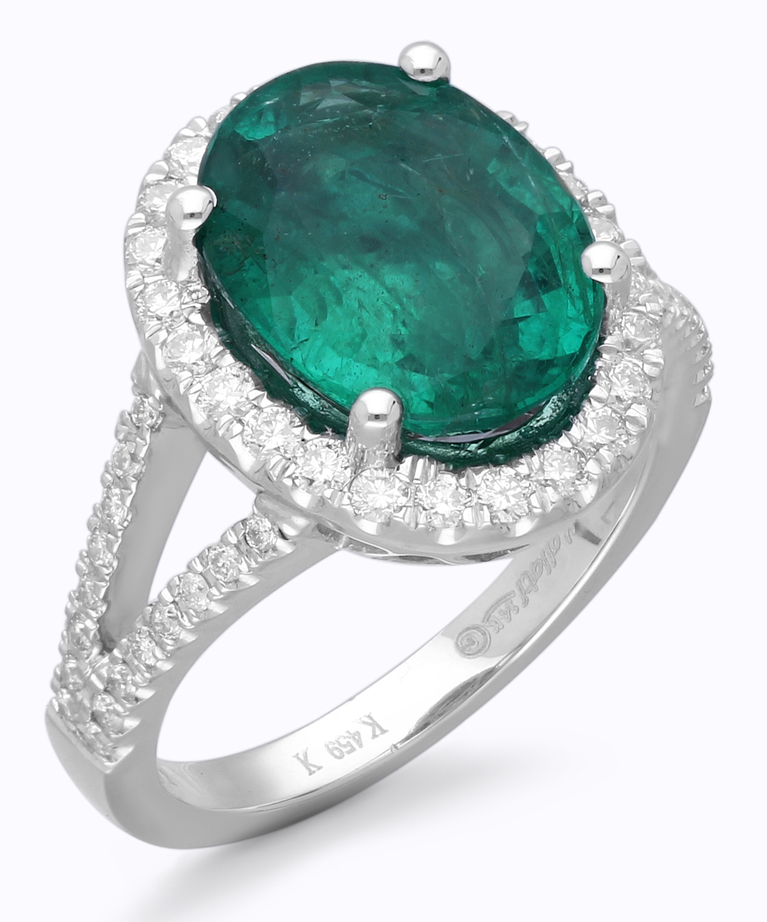 14K WHITE GOLD EMERALD & WHITE DIAMOND R