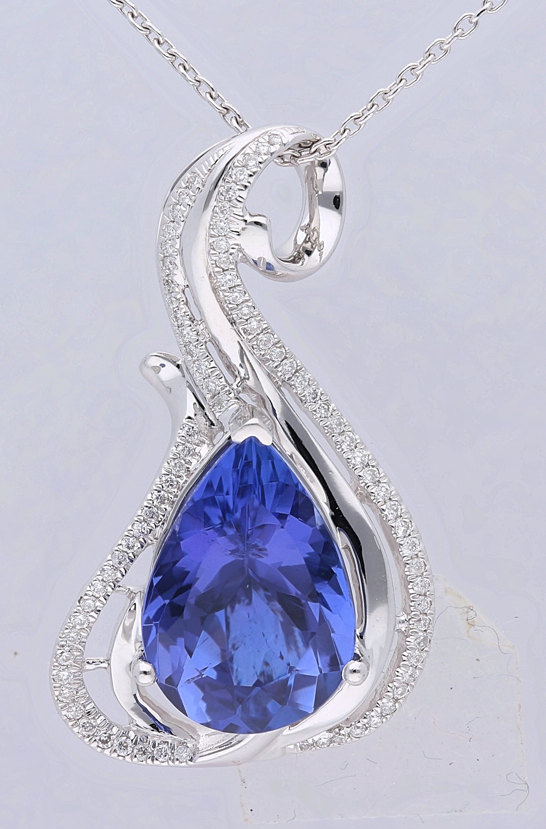 14K WHITE GOLD SI TANZANITE DIAMOND PEND
