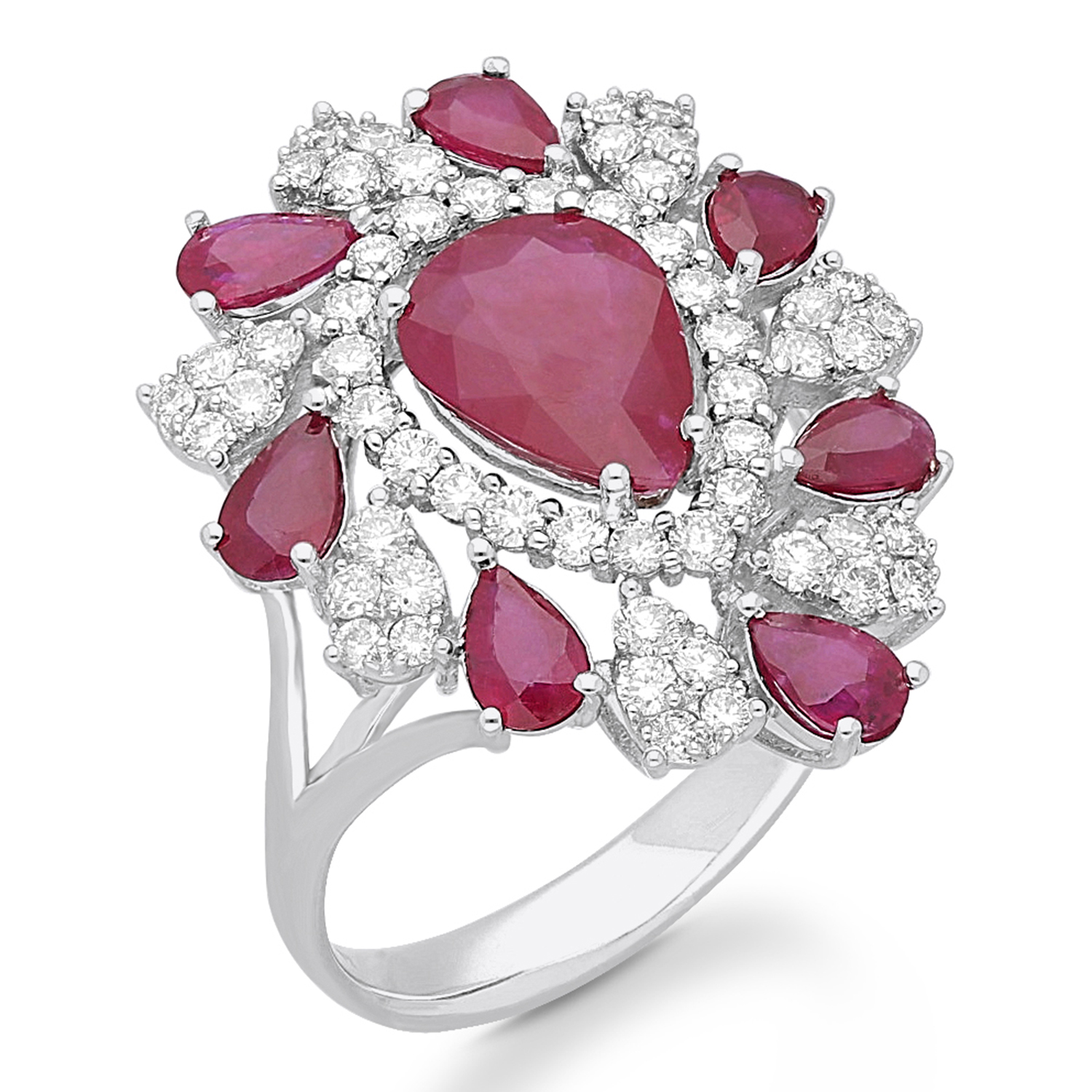 14K WHITE GOLD RUBY & WHITE DIAMOND