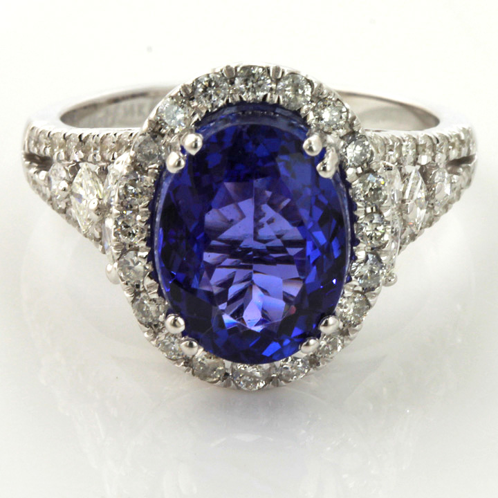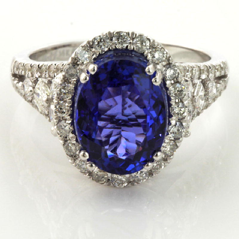 14K WHITE GOLD OVAL TANZANITE DIAMOND RI