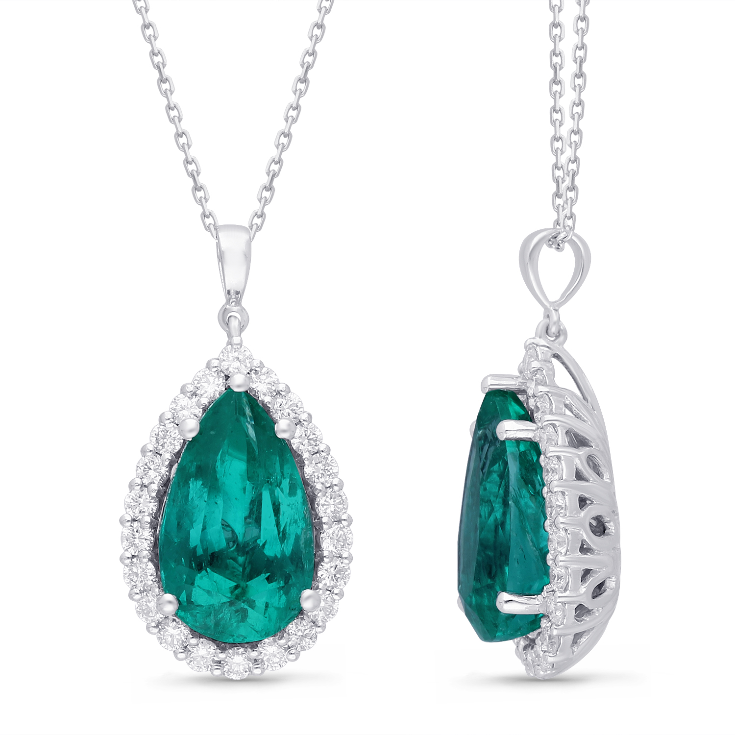 14K WHITE GOLD COLUMBIA EMERALD & WHITE DIAMOND FASHION PENDANT