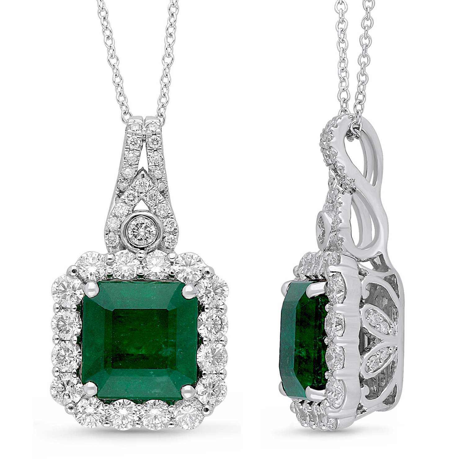 14K WHITE GOLD ZAMBIAN EMERALD & WHITE D