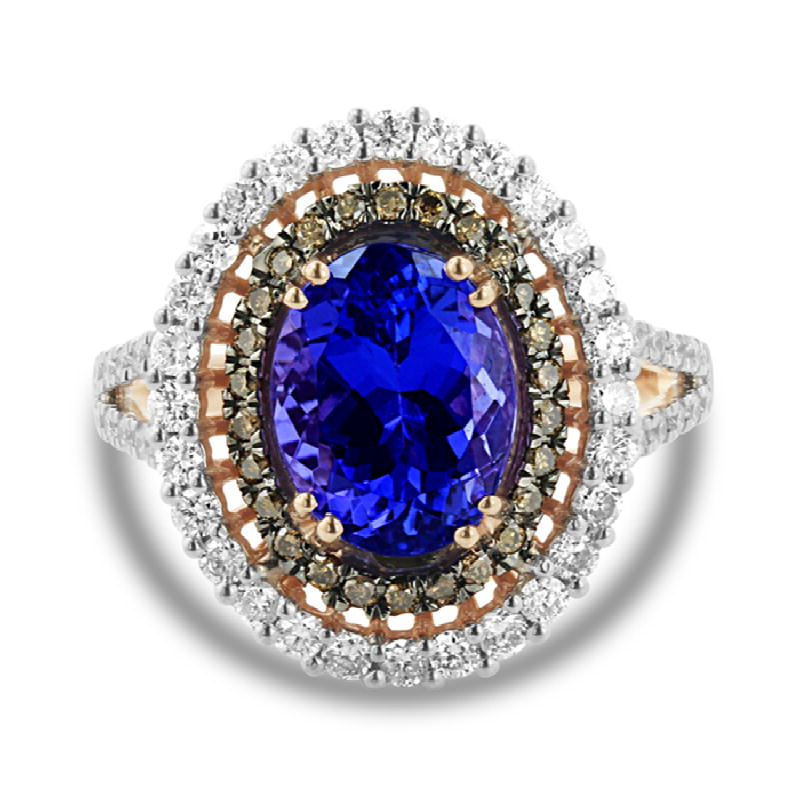 14 K ROSE GOLD TANZANITE COCO WHITE DIAM