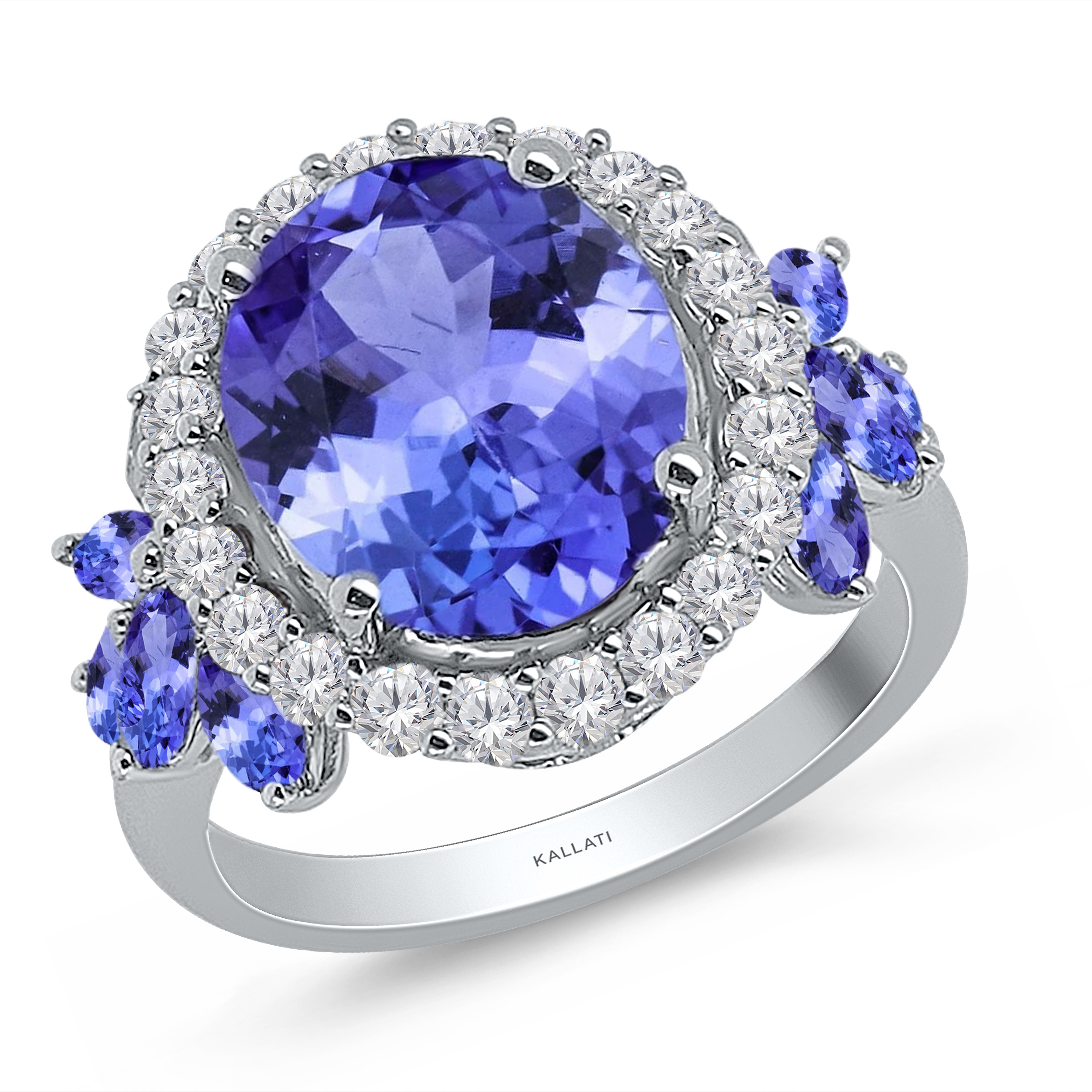 14K WHITE GOLD OVAL TANZANITE DIAMOND RI