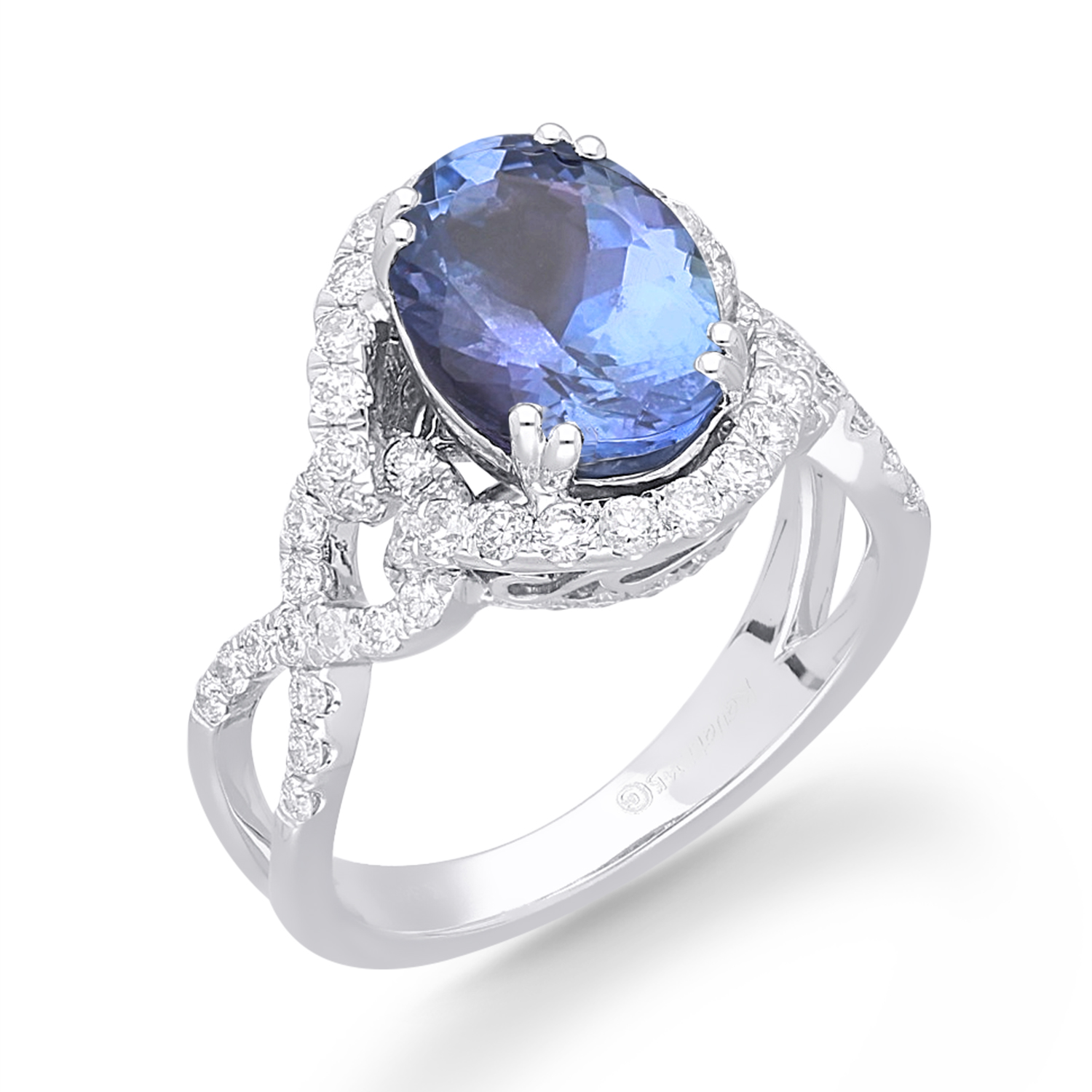 14K WHITE GOLD OVAL TANZANITE DIAMOND RI