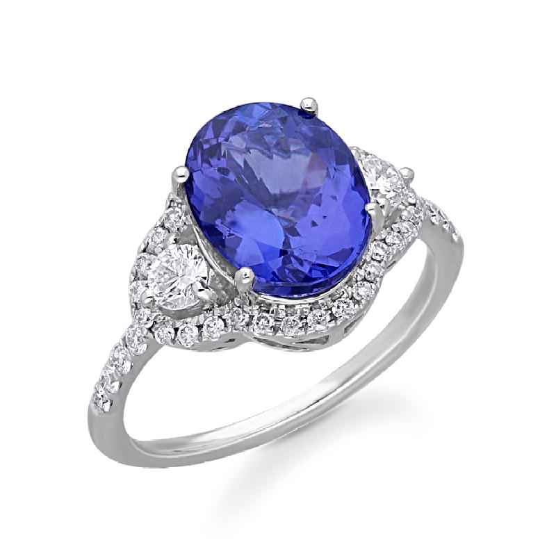 14K WHITE GOLD TANZANITE & WHITE DIAMOND
