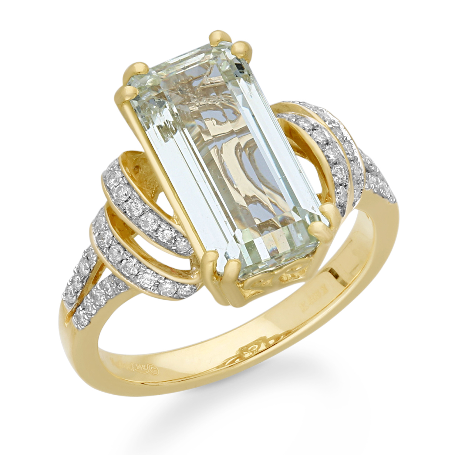 14K YELLOW GOLD GREEN AQUA & WHITE DIAMO